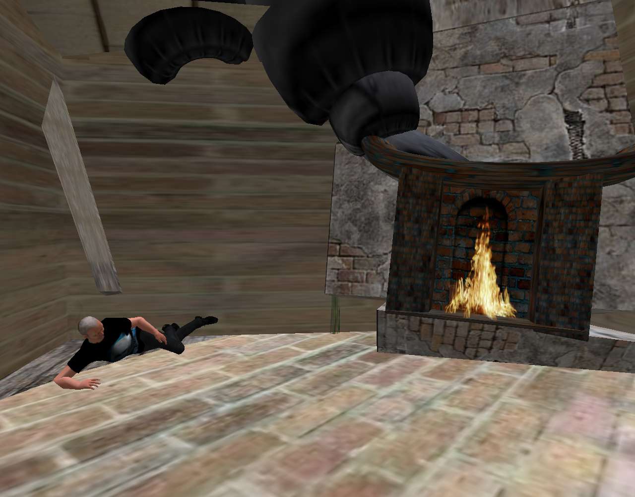 Next thing he knew he was in a room of unknown location, fire burning brightly in the hearth beside him. “Hi,” it said in a flamey voice, fittingly enough, low but rich with energy. “I guess you’re wondering what just happened.”