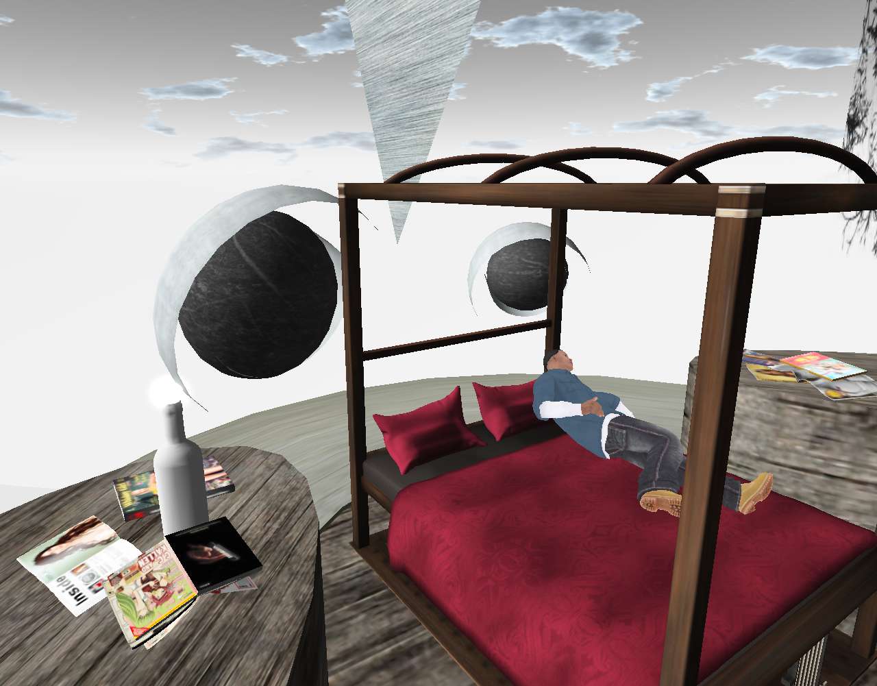 He was far up in his castle, on a higher level than where Philip Strevor and Dr. Mouse formerly known as House hung out. But he had no reason to be here now. Mouse was gone — dead again. Philip was… in Juho he thought? Heck, he might be dead too for all he knows, the first time if so in his case and not the second like for Mouse. Philip’s off again on again girlfriend Nada New Year: not around either. His own girl Daisy had also left the scene, at least temporarily. Another argument about AI, PHEH.