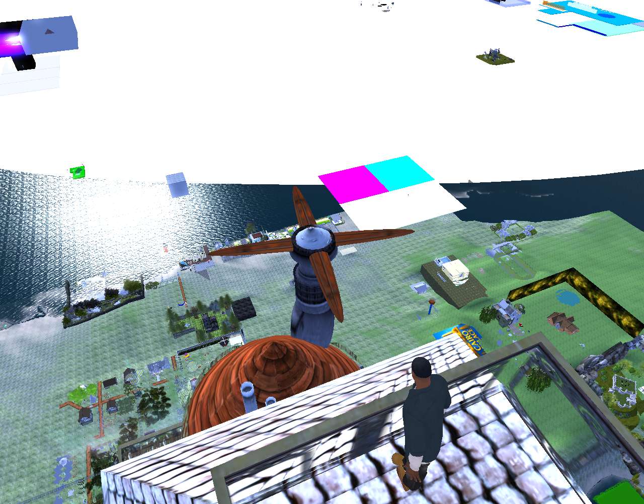 The other way of course. Away from the world sea. But I still can’t see it. Bit too far away even with my fully extended draw distance.