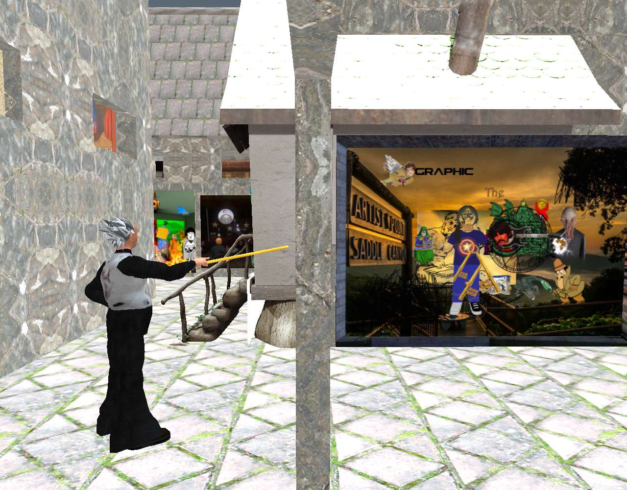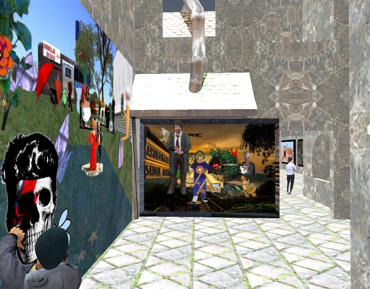 “Father Fecked was pointing with his possessed cane to end photo-novel 49. But he wasn’t really pointing at the Anton pin stuck in the Anson sim below Nautilus Island. He was pointing to the future, to ‘The Point of It All.’ Thus the name. We can recreate the scene in the present by looking head on at the wall separating the two and seeing both sides. See?”