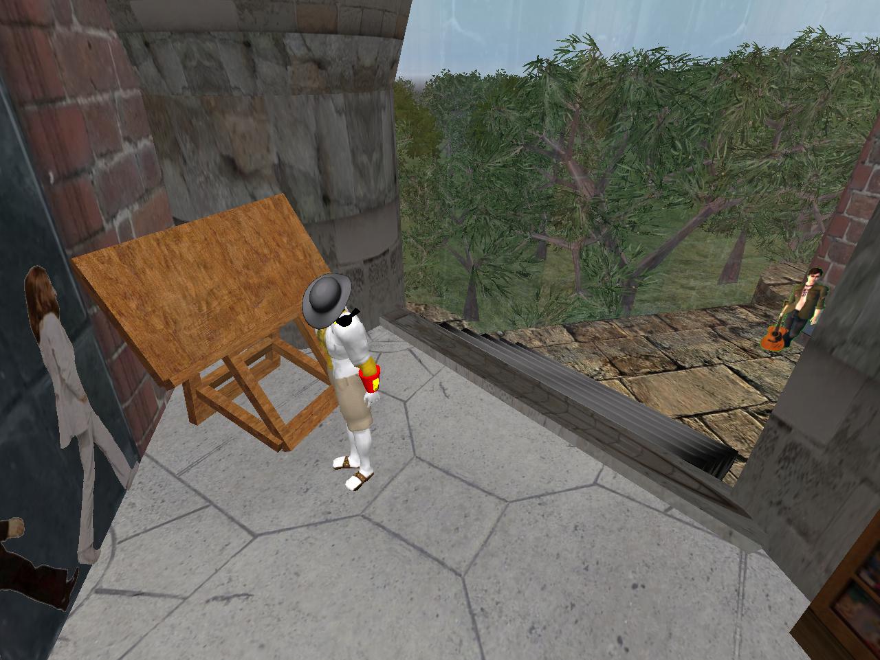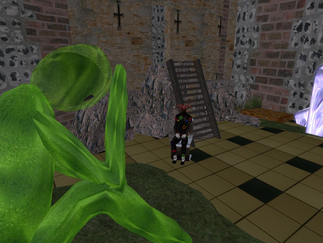 Afterwards we reconvened at Carrcassonnee’s gazebo to discuss the viewing. Spongeberg wanted to see the first part again to take notes, so Furry Karl and I walked around town some more. Carrcassonnee simply teleported back to her position in the gazebo. I knew it was ultra important that I correctly sell what I would consider the true status of “Uncle Meatwad”. To save the town. To save my reputation as an artist. So the questions began…