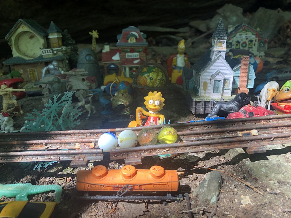 The bees attacked from below. A mud dauber threatened from above. The toys agreed to stay perfectly still until I returned to keep down damage, but what could have been an event so special and wondrous turned out to be quite disastrous. Aloha (village name) seems to mean goodbye as quickly as it does hello. Looks like we’ll have to regroup and move again, pheh. Unless… no, can’t do that. Must respect the woods and the denizens already there. Like spoon snake. Like *hisser*. But the day was not without its casualties. Eye for an eye? NO… can’t go down that road. Just no.