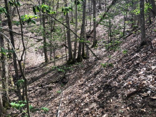 Last spring in background. This spring: foreground. Almost a square mile encompassed in a circle enlarged slightly to be exact (hence the 2 concentric circles, inner pink and outer red). Last spring’s circle, called Country Park, is 3.18 miles in circumference, so about 8/10ths of a square mile in contrast. Peak of finds in Country Park: the Monolith. Peak so far of new circle — think I called it Pink Hill. Or Red Mtn. — anyway, the peak so far is Turtle Head in combo with Campfire Rock just described in that last post here.