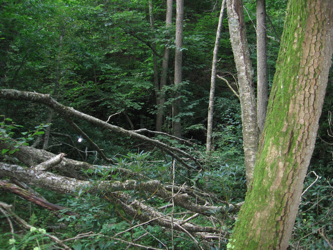 Shot of large rock near Green Oz Creek, in the section of Green Oz I’ve been calling Yellow Down in this here blog. I need to eventually give it a name. Just to remind, Green Oz represents the middle ground of Green Oz Creek from source to mouth, a more open area with numerous fields roughly centered by Tinsity. It seems naturally divided into two larger section: Greenup to the north and Yellow Down to the south, with a smaller, central patch of rhododendron that appears to be a divider between the two called Brownie (or Dark Space). Tinsity lies on the upper edge of Brownie, or, oppositely, on the southern limit of Greenup.