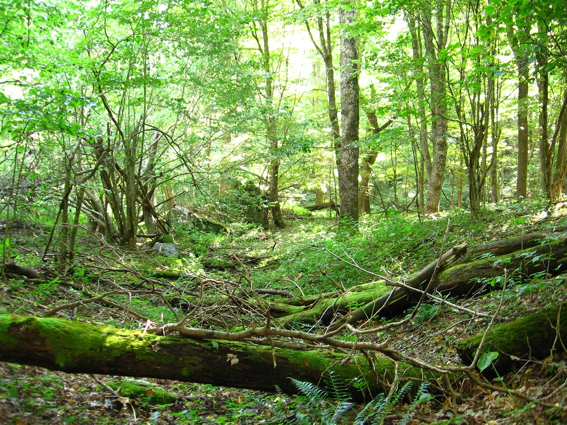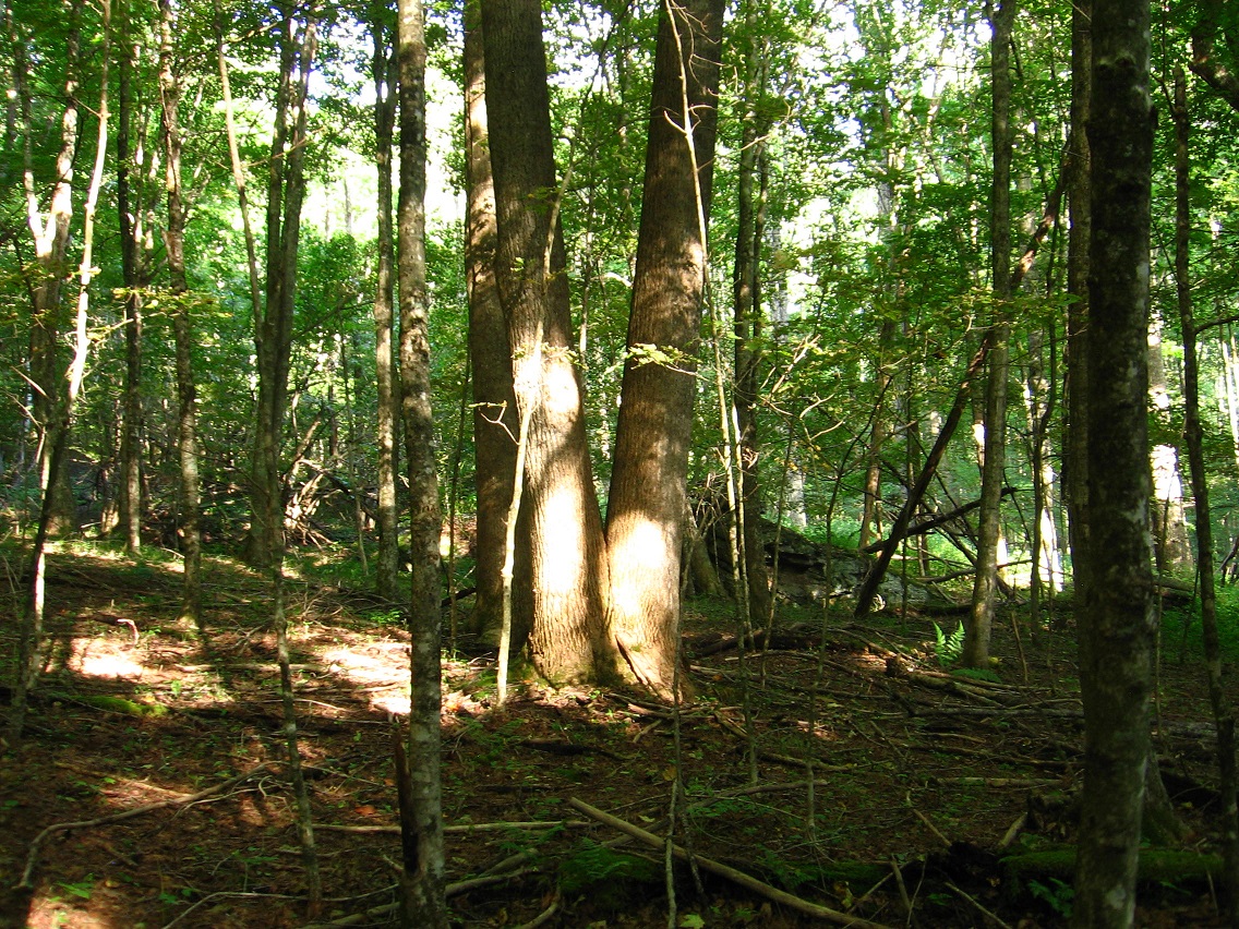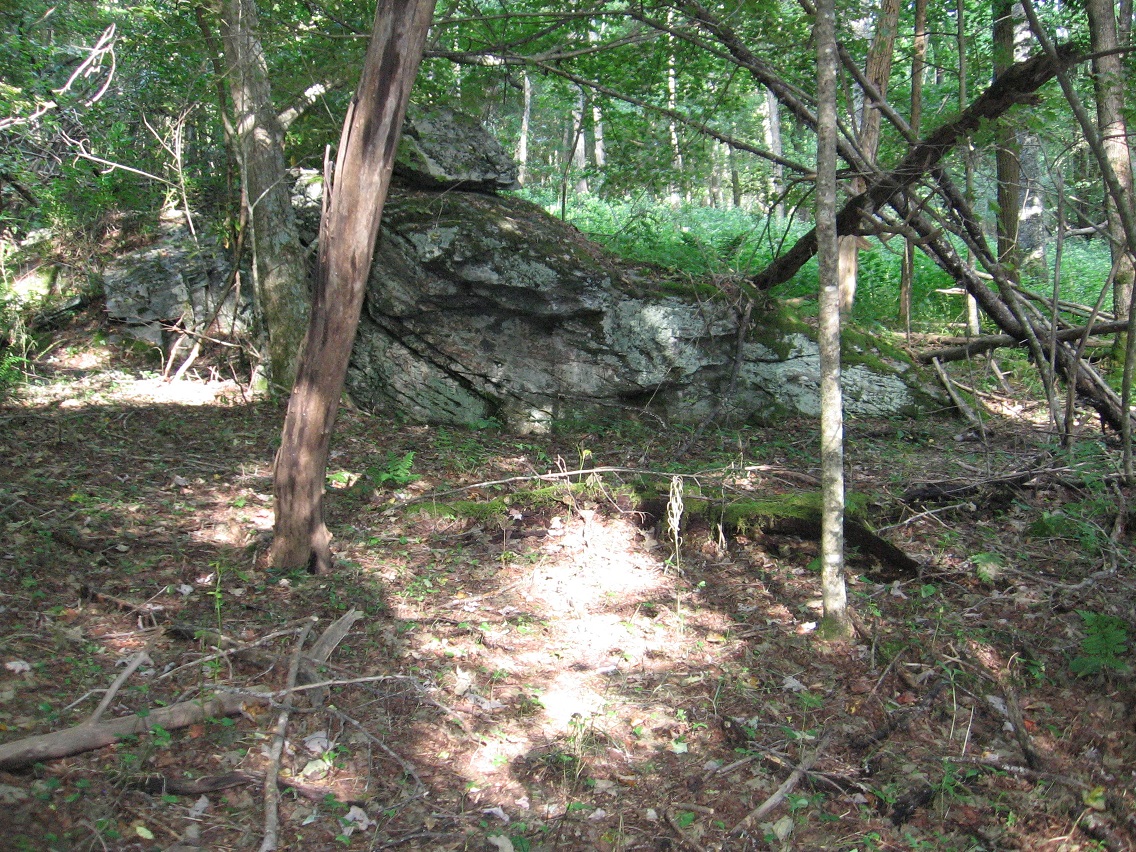 Well, today was a pretty decent hiking day for a change. The past two days, actually, I’ve been able to re-visit Lion’s Roar for the first time in probably 1/2 a year or so. Not much has changed there, which is exactly what I’d expect, given that it’s tucked away in the deep woods with probably no visitors except for me. Pots still there; bottles still there. I could reset up Lion’s Roar in a short time. However, the place is wetter than I remember — I don’t think that’s really a change per se, but just something to do with the seasons. I set up Lion’s Roar in the fall, and under dryer conditions when the leaves are off the trees and direct sunlight hits the place with greater frequency. But the bigger news today is finding a small but flat platform area a little above Lion’s Roar on the ridge directly west of it. A place for a tent or even small structure if I wished. This is the same ridge that Kentucky, a much larger (if not necessarily flatter) platform area, is situated upon further up. I also re-visted Kentucky both yesterday and today, and was able to eyeball the Bee Line again from various angles. It still seems to be a legitimate phenomenon.
