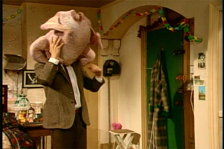 And a brother or son named Dean who sometimes dresses up as Jolly old St. Nick on Labor Day and as a, er, turkey — *not* a pumpkin, Hucka D. is reinforcing — on Halloween. Interesting.