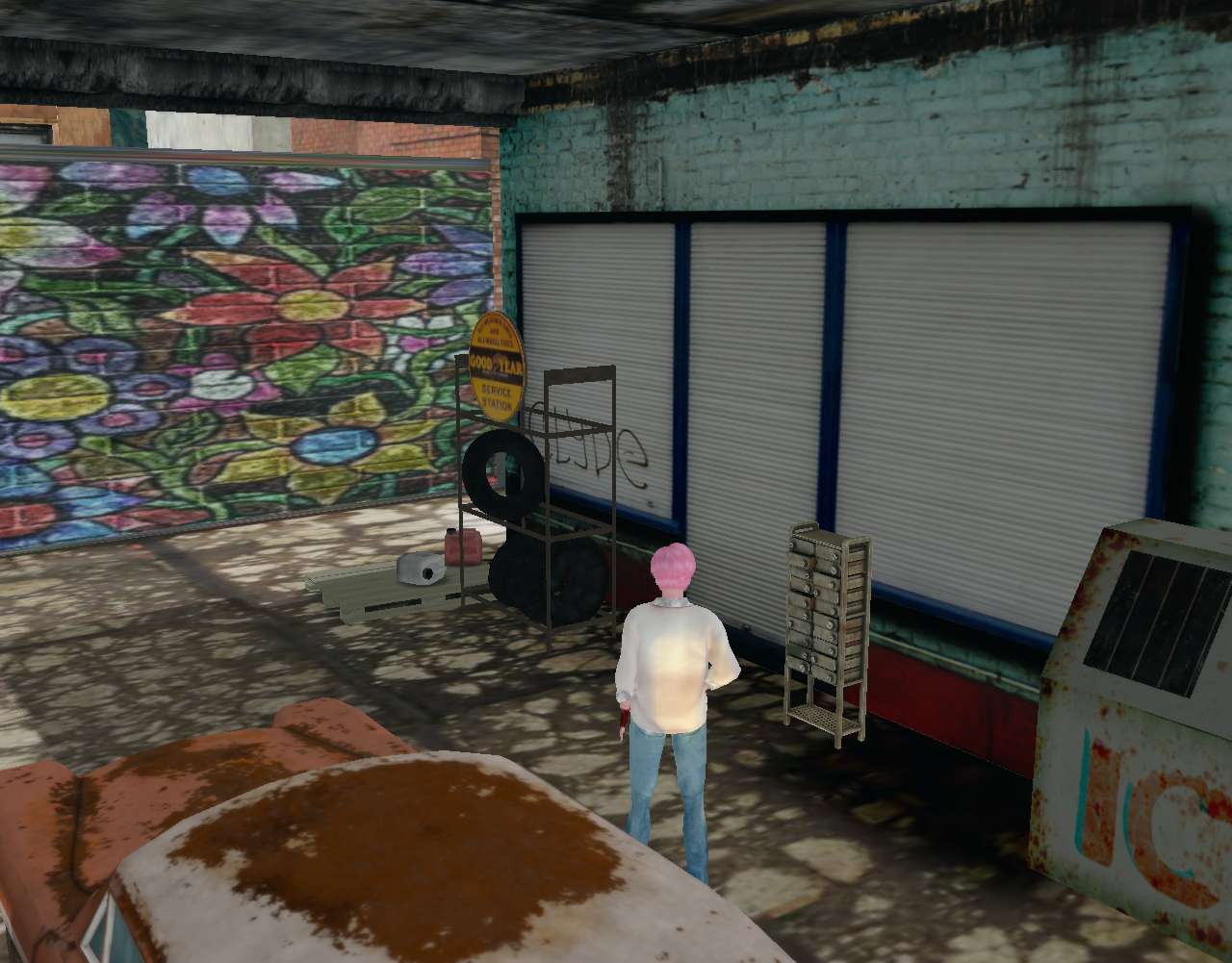 That graffiti artist over yonder (she triangulates between useless subway and abandoned petrol station, a right one it appears). Maybe they will know something about Clyde. Worth a try.