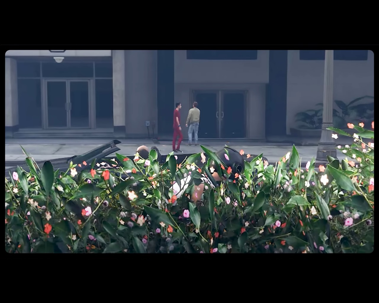 I picked him as my next NPC to follow because he was red and thus easier to spot, I figured. On my motorcycle, I hid in the flowering bushes, stifling the urge to sneeze while watching his every move. I thought of red striped shirt wearing Waldo who’s always hiding in those famous puzzle pictures, except the shoe’s on the other foot here since I wasn’t wearing red. Red shoes too, I suppose (he checks his feet). Hard to tell from this distance.