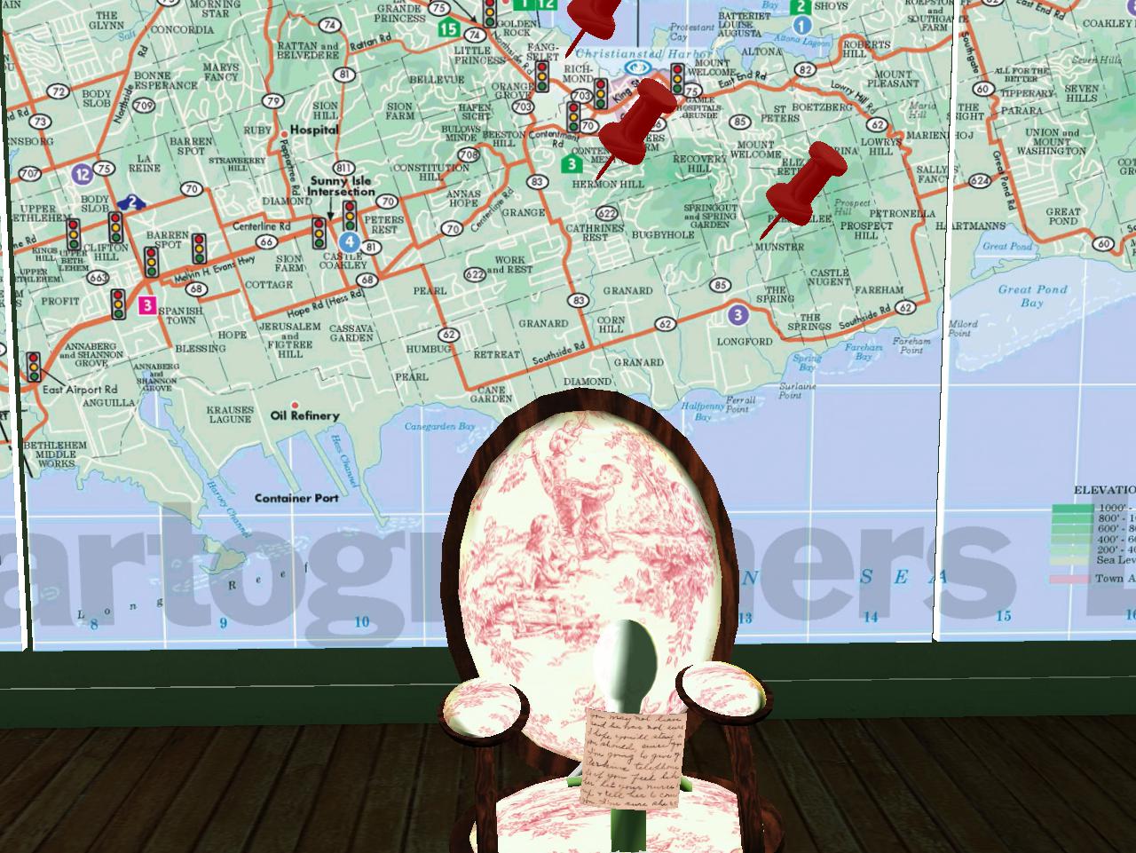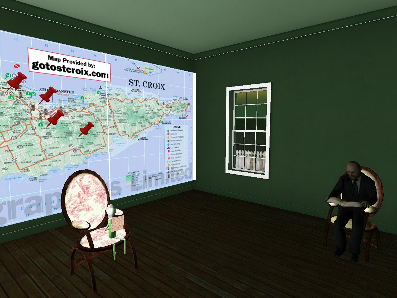 Jeffrey Phillips now pointed upper right with his cane finger. “Parasol,” he indicated. “Opening for her to come back,” he explained further about the presence of the pin marking the small Virgin I. village on the map. “Umbrella,” he spoke more back to Kolya. “But don’t open it or there’s a chance more rain will pour into your brain.” Less snickering this time from Sally. She truly felt sorry for Kolya and his holey headed condition and thought new-ish lover Jeffrey Phillips had taken it too far this time. She forcefully halted her smile, turned to Kolya as well to show her serious face, perhaps inserting a schweet secret smile upon it in place of the wry, even mocking one.