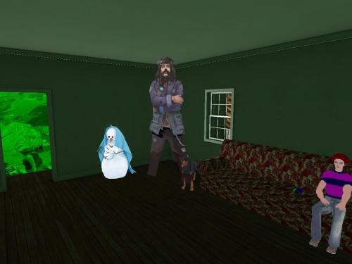 In yet another room of the house, Original Eve (still macabrely clutching her dead child Oliver), Pigpen from the Grateful Dead, and couch sitting Norris/Harry waited for their chance to join in. It never came.