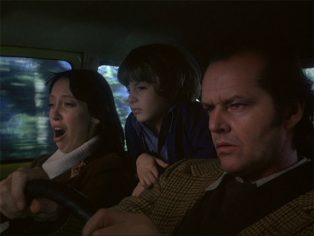 Cut to the interior of the car, Jack driving, no one looking too cheery. Wendy, wearing a wilted brown flower decoration on her brown jacket, as if an expression of summer’s end, yawns sleepily.