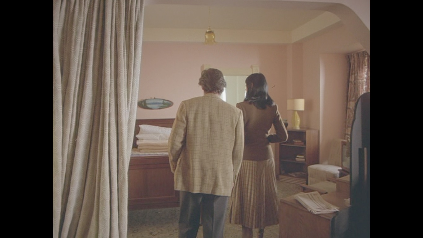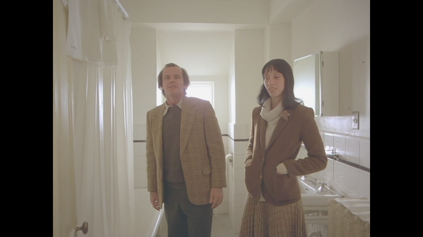 The next scene I wish to review for these kind of flaws is shot 109, where Jack and Wendy are shown their humble living quarters in the hotel by manager Ullman. As Kearns notes below, Wendy is obviously disappointed at staying in the staff wing of the hotel and not one of the guest rooms.