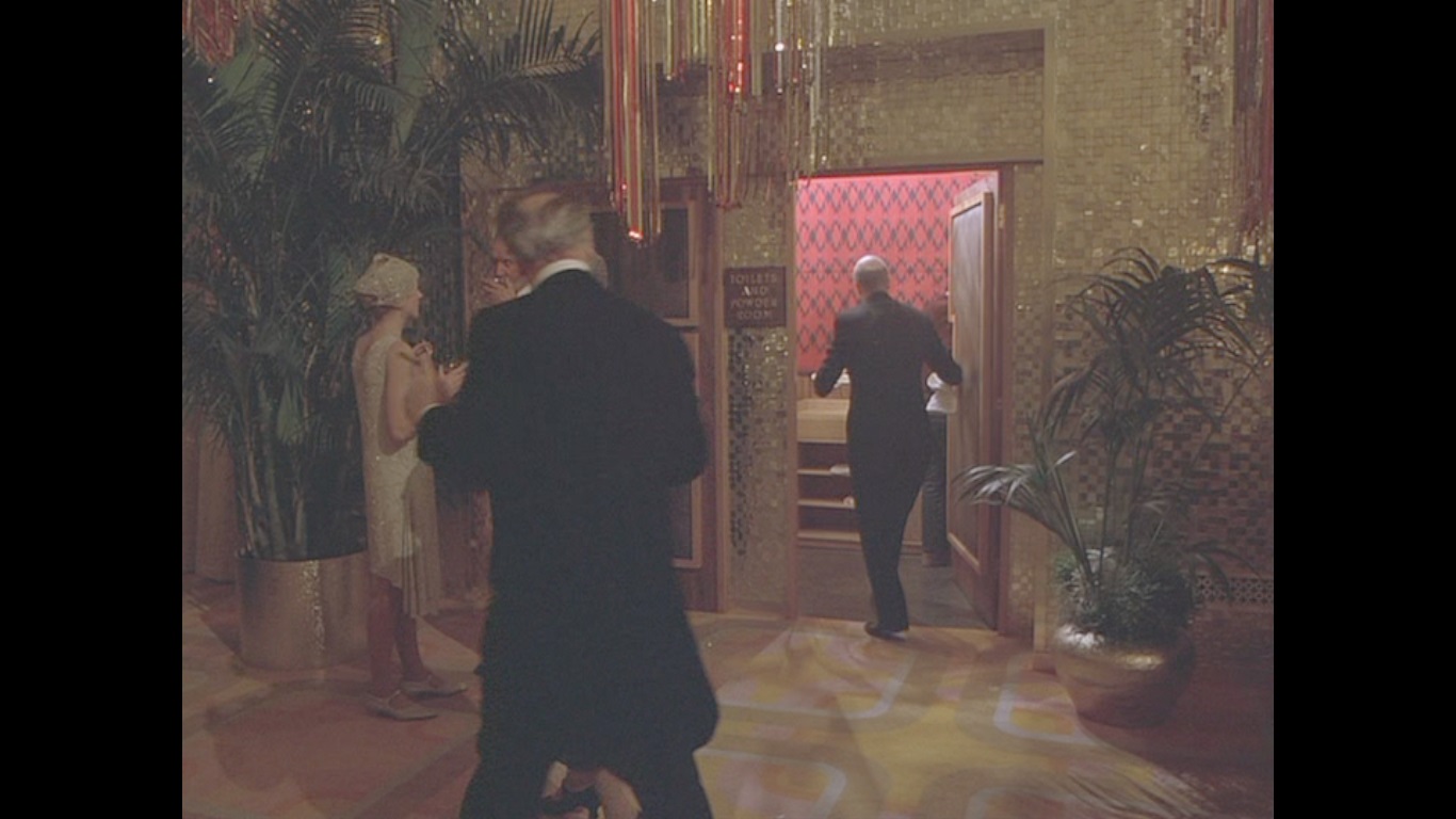 In reviewing this section, I noticed a more prominent film flaw to Wendy’s left as she scans the modest bedroom. I soon realized it points directly to the bathroom mirror that will soon be exposed from behind her as she continues to walk toward it.