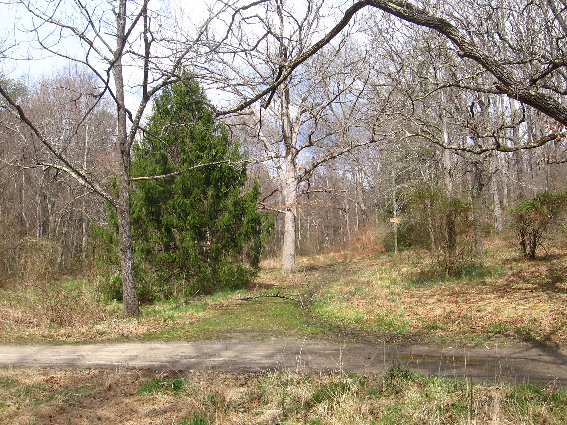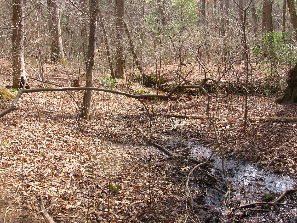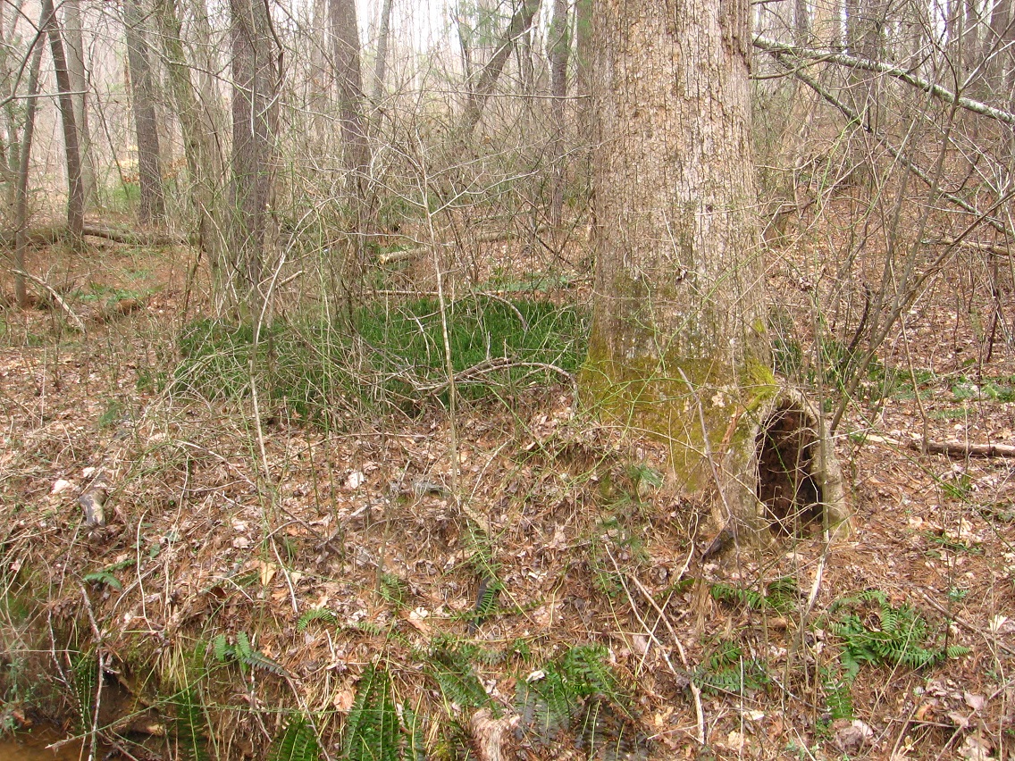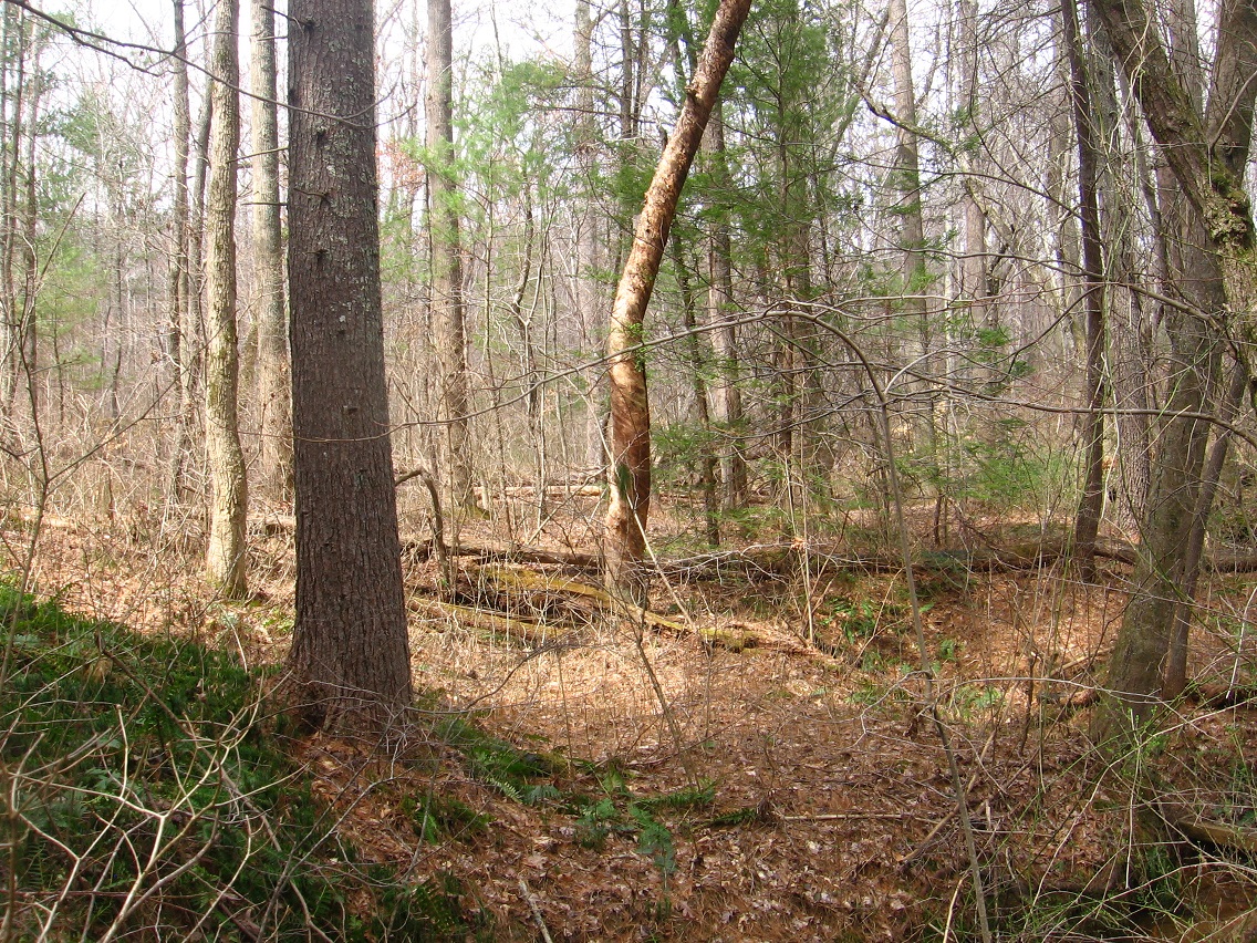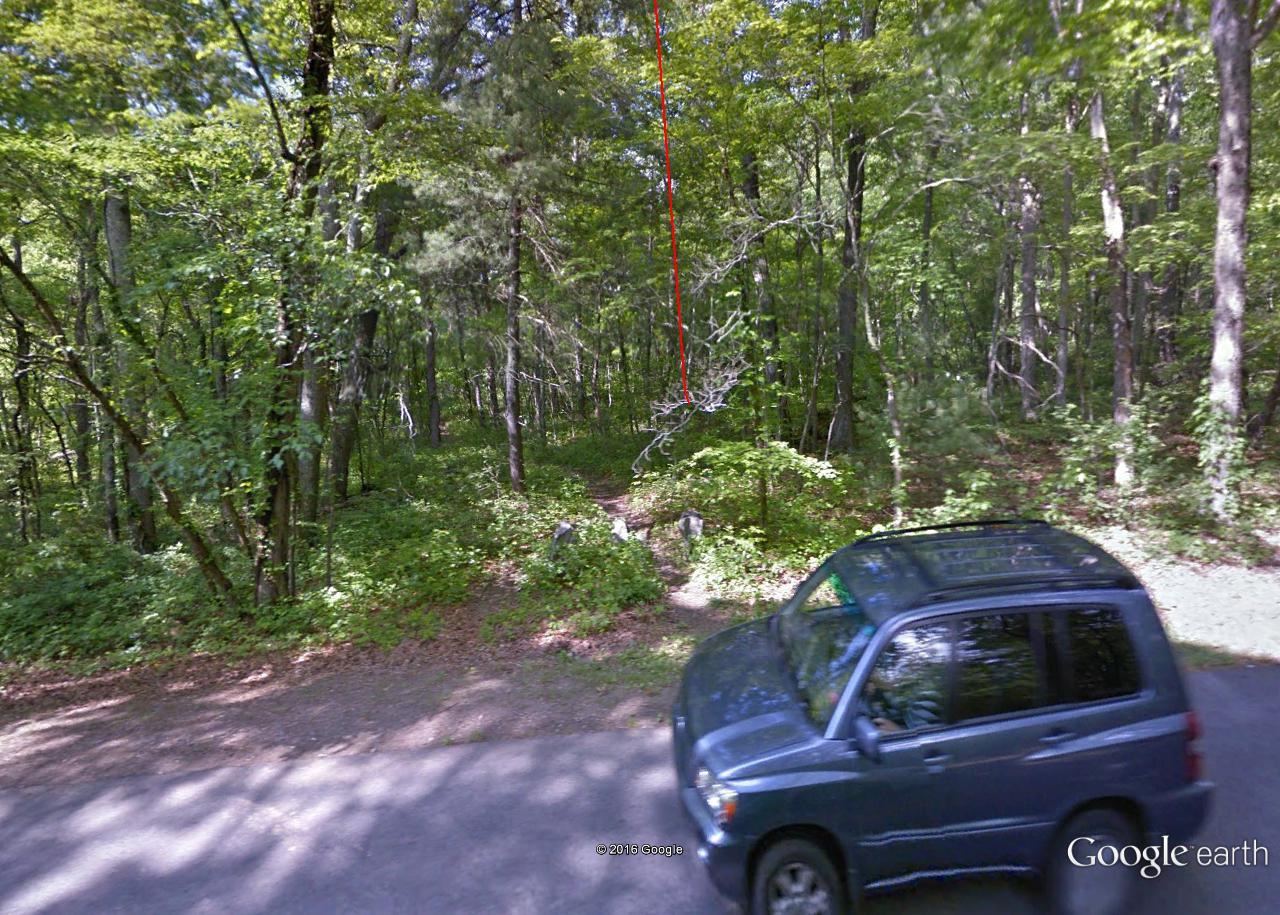 If Spongeberg in fact lives there, this would be his view across Matland from just outside the teepee. The 3 rocks mentioned before are basically in line with each other in this view, with Welcome Matt at the bottom of the photo, Crocodile Rock beneath the small, dead hemlock near the picture’s center, and Eagle Rock unseen beneath a stream bank in the background. I suppose this could be called Three Rock Line or The Line of Three Rocks, then.