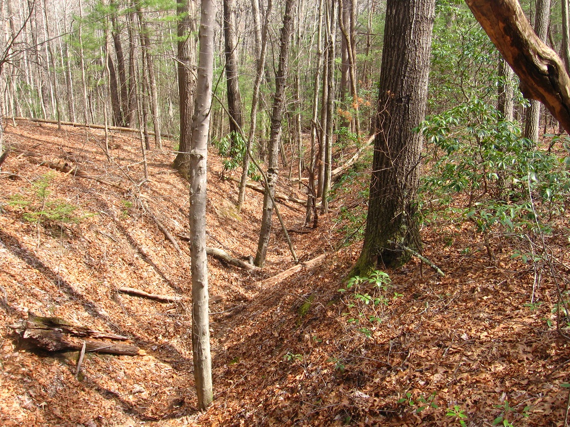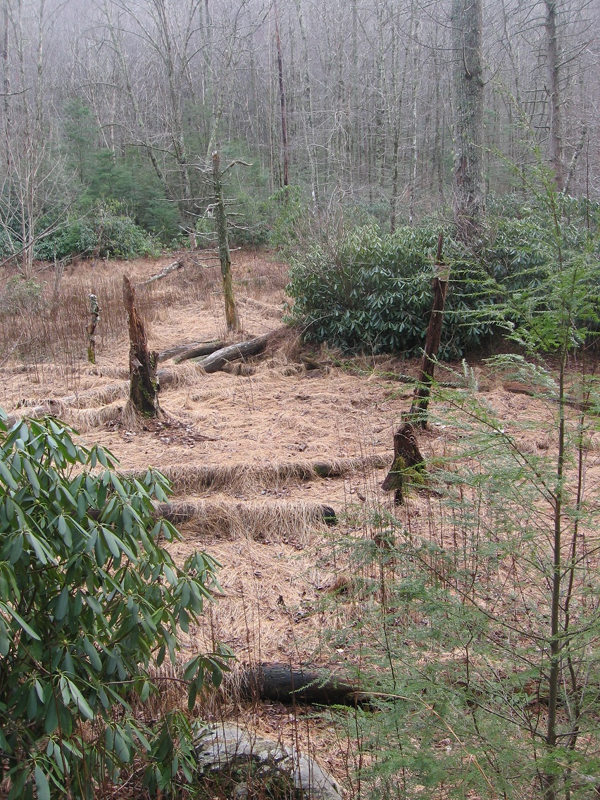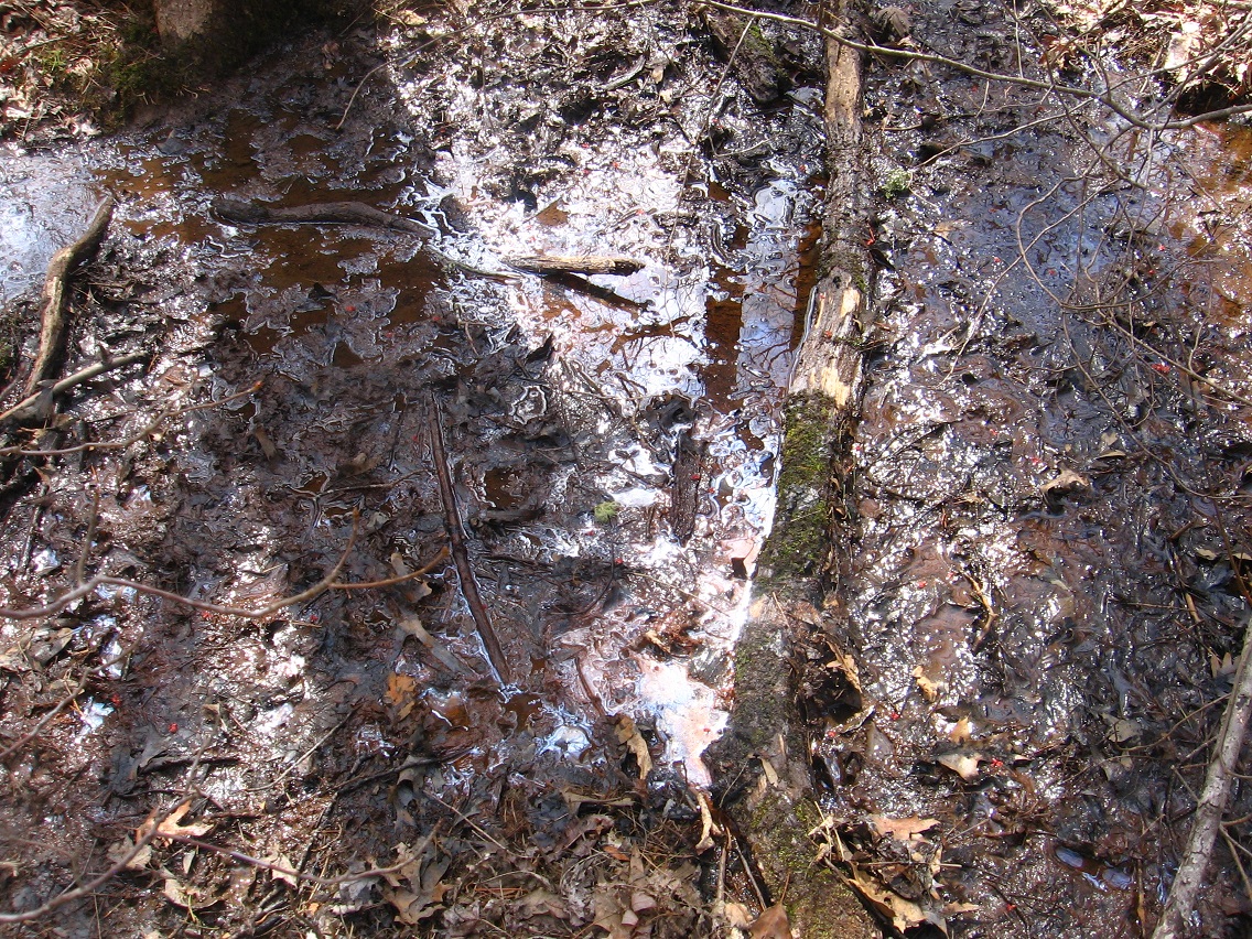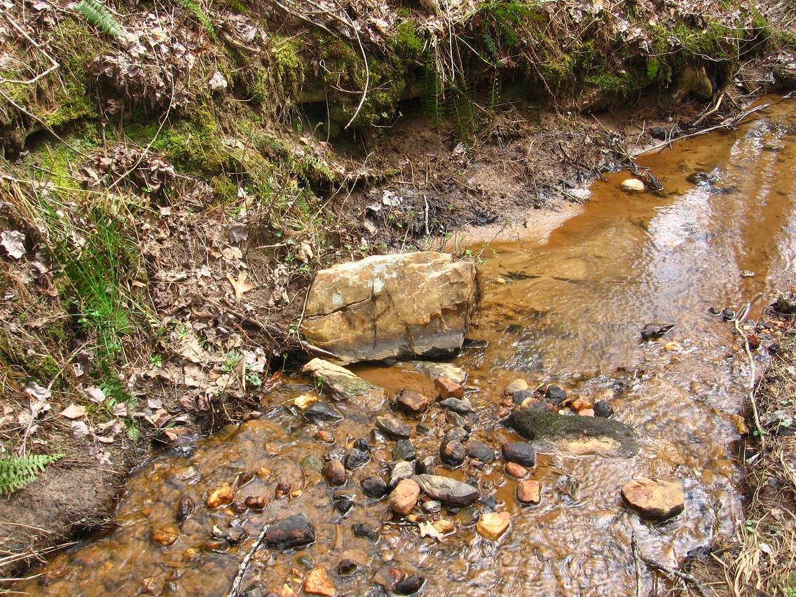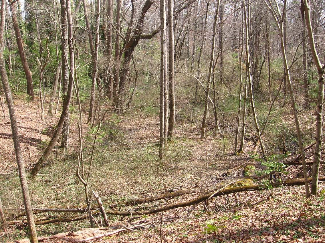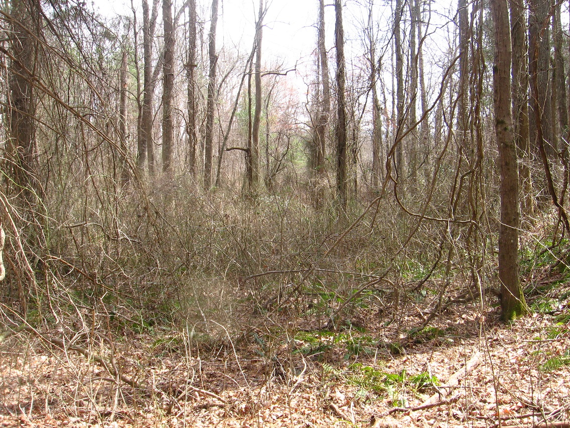 If Spongeberg in fact lives there, this would be his view across Matland from just outside the teepee. The 3 rocks mentioned before are basically in line with each other in this view, with Welcome Matt at the bottom of the photo, Crocodile Rock beneath the small, dead hemlock near the picture’s center, and Eagle Rock unseen beneath a stream bank in the background. I suppose this could be called Three Rock Line or The Line of Three Rocks, then.