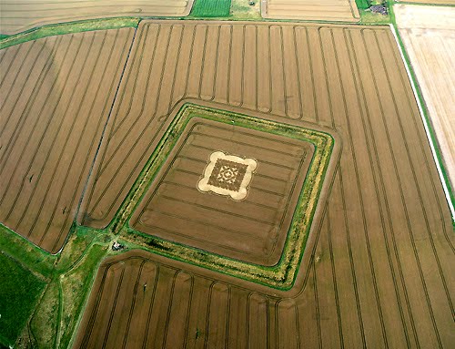 This square-ish field in Morgan’s Hill, Wiltshire County, England was the site of a complex *square shaped* crop circle in July 2009.