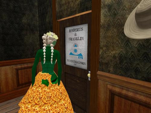 She suddenly has the urge to get up and dance. Must be the costume. And the place.