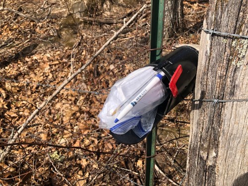 Stacks of rocks greeted me upon my return to Newfound Lands today, right where I park my car and cross a small stream, an out of the way place indeed at the entrance to my “secret path” up the hill (I call it the Daffodil Path). I took it as a sign someone was pleased I was doing this. Thing is, it rained really hard last night and I believe the rocks had to be stacked earlier in the day because of flooding, only several hours at best before I arrived. Yet no one was around. I donned my “I Believe” cap and headed up to the pasture…
