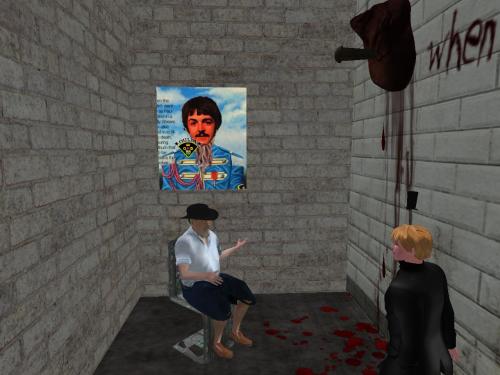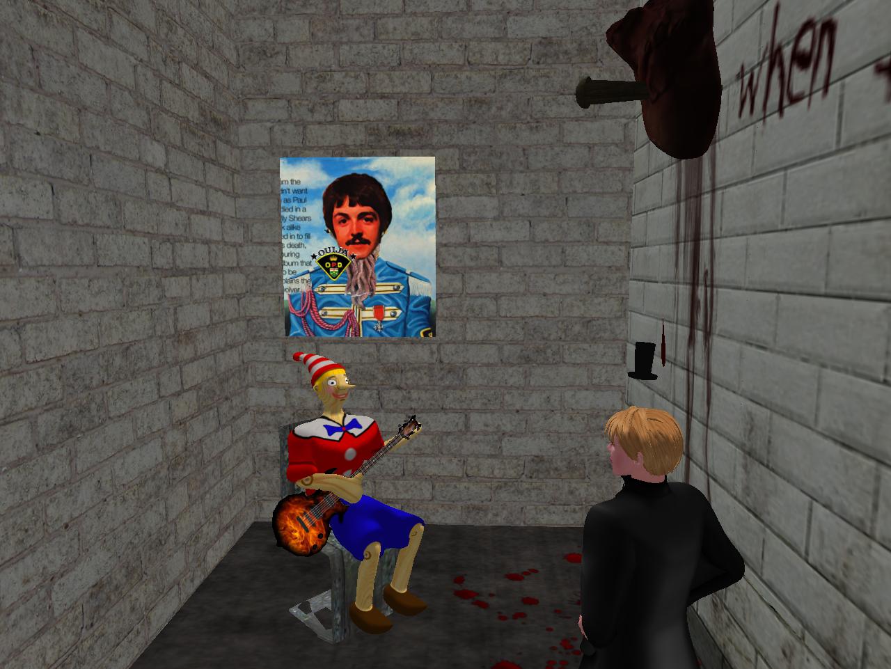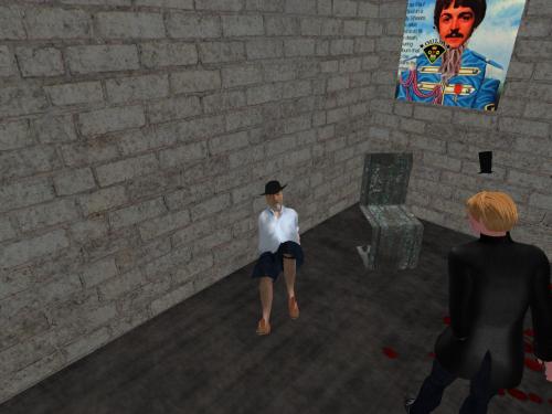 Old Mabel was confused. She set out much earlier tonight to track down a sighting of Keat Owens in Sansara’s Langdale sim, but this *twin* claimed never to have visited or even hear of Collagesity. Old Mabel asked his name. “Pety” returned the person. Obviously not Keat Owens, then. While in the hotel room he inhabited Old Mabel looked around for further clues about what was going on. A blue feather pen attracted her attention, but she was on the wrong path now. Pety also mentioned something about a thimble thief. Old Mabel will do more research on that.