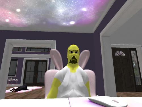 Afterwards, he tried to isolate everything associated with the mysterious crash she talked about. 309 prims total in the linked objects, including this wagon that just happened to have formerly appeared in Squared Root City over in Nautilus, a town now defunct as we know from the last photo-novel (37). He recalled he use to be able to sit on these steps. Here: