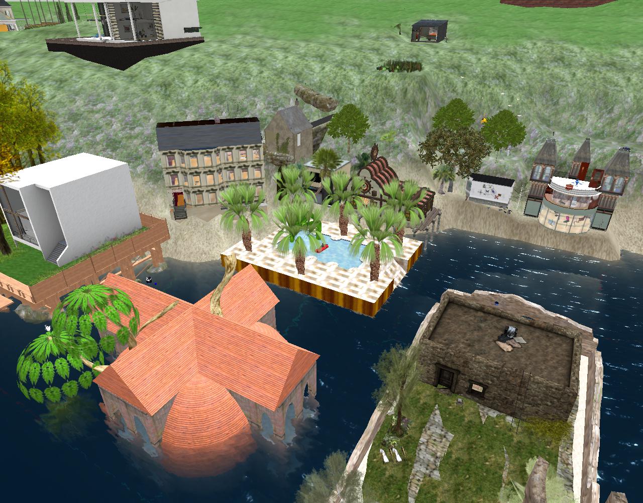 Bringing back one of the old Moard Ling structures to my land: The Temple of TILE, along with an attached palm pool. Pretty bulky and clunky I know, but I still like it and think it has potential for further development. So I moved whatever else was in my water up in the sky to live, at least for a while. The parcel is private for now while I work on the project.