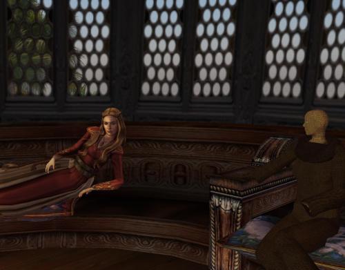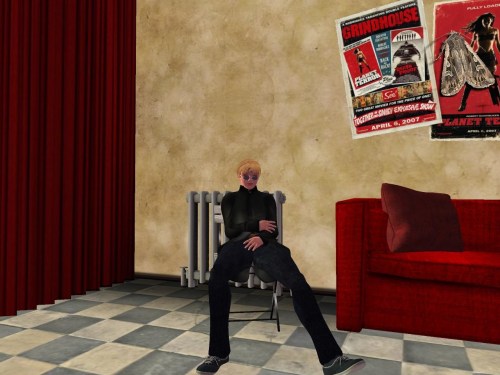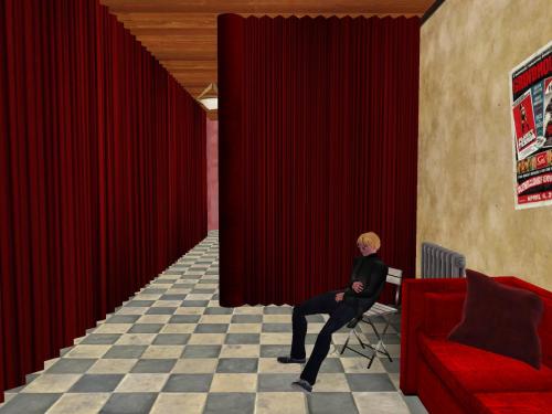 The couch here is unusable, with no sitting scripts. Tired of standing, Bill (Wheeler) rezzes a wearable chair in Philip Strevor’s so-called “waiting room” and tries to be patient. 1 1/2 hours Mrs. Hazelhurst has been in there, she complains inwardly, but does not dare to say aloud. This place has been bugged for as long as she can remember.