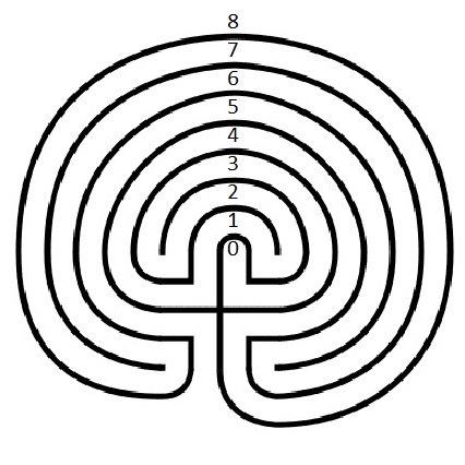 This number sequence translated into our 7 circuit or classical labyrinth could look like this: