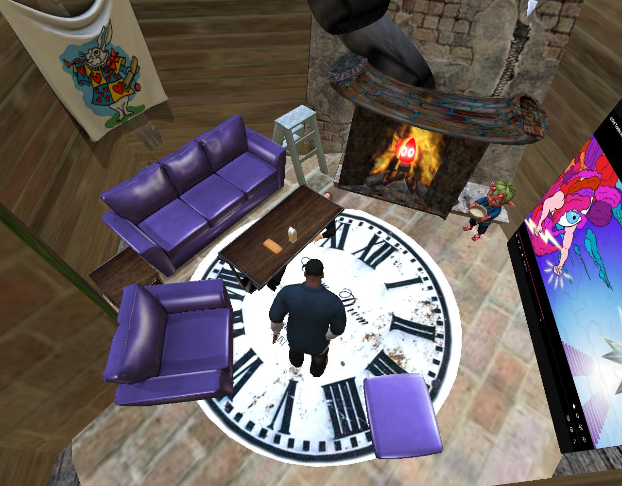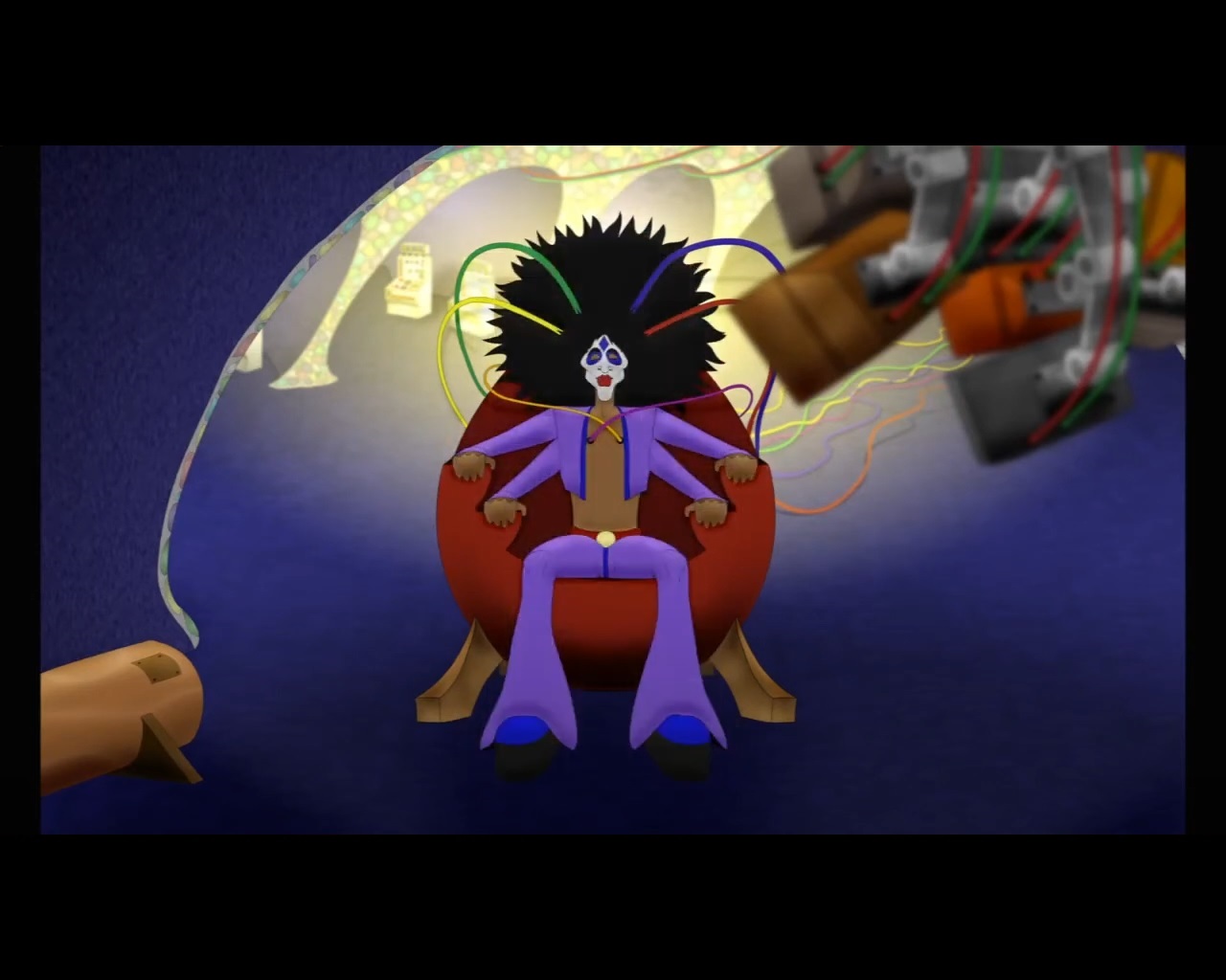 “Could be could be. I have to go to the table now. I have to make notes. Please don’t unfreeze the image on the screen here while I work over there.” He points backwards with his cane from his viewing chair, toward the kitchen we saw him sitting at with Frank and Philip a couple of sections ago. I don’t believe he’s shown up in this here blog and attached photo-novel since. Time to bring him back I guess. Oh wait… what’s happening? He’s now on the floor . He’s shaking… violently! Frank… do something! Move the table and its contents to start! TBC
