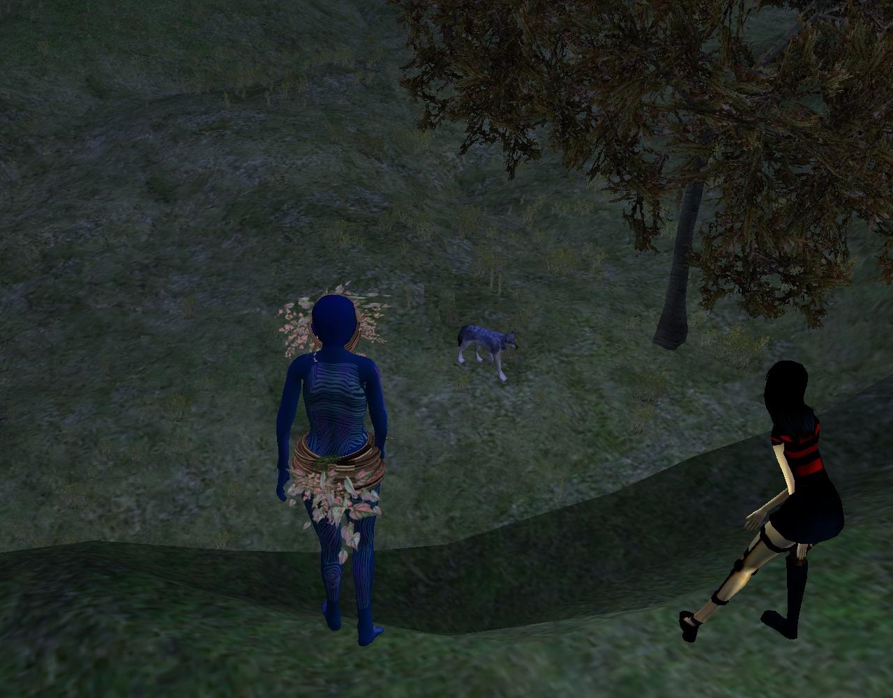 “Oh what a *beautiful* dog… wolf. Just what I needed to cheer me up! How are you boy? Girl?”