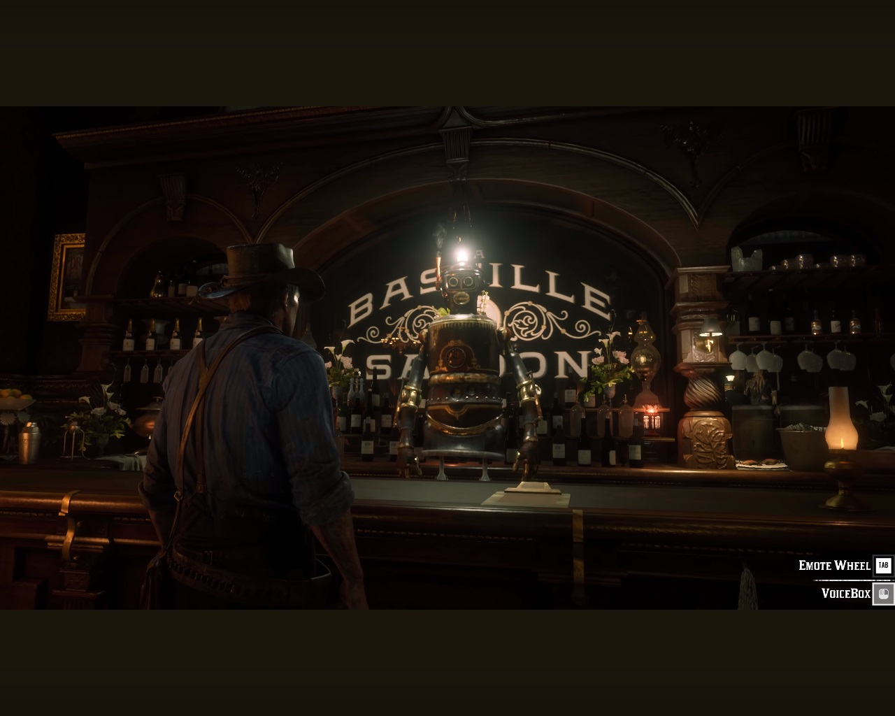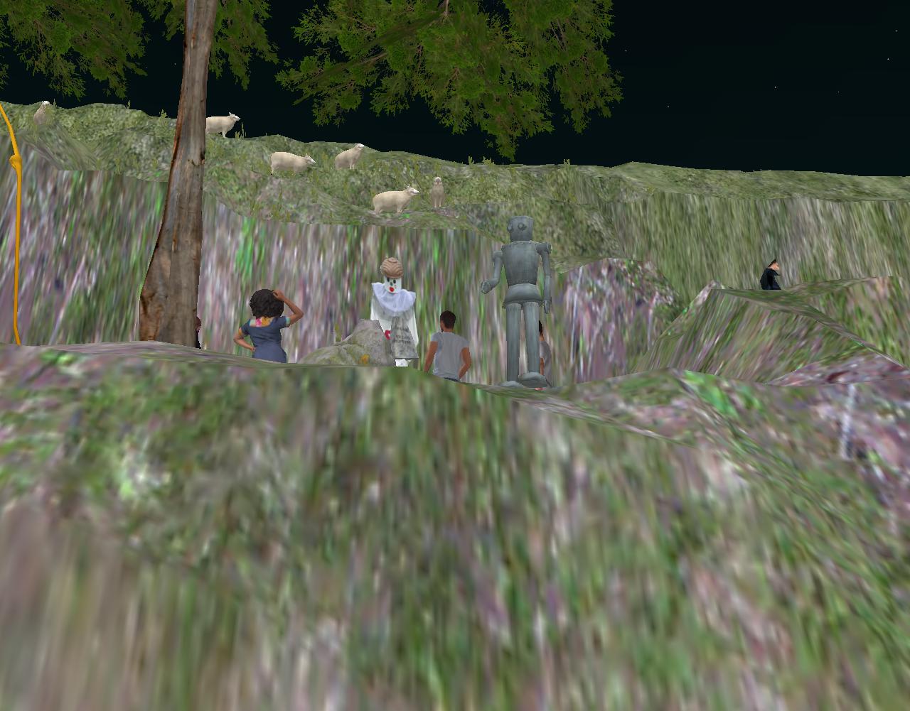 “Clocky?” Daisy Flathead answers him when he then walks down the hill to the revamped, reopened Hole in the Wall bar parallel to and in synch with the newly placed temple/pool complex and asks about the robot’s current location. “Kicked out by the ties.” Like tiles but different, Frank Lynn understands. Along the same lines.