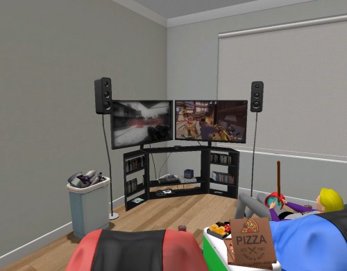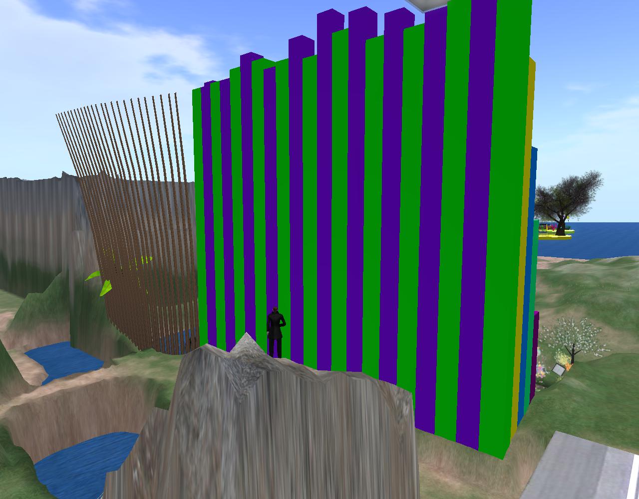 The ship swooped down and carried MAT off to a lala land and dropped him into the ocean where he was rescued by a passing whale and brought instead to Humansville where he met Baker Bloch and Hucka Doobie while breaking into a house and who then helped him find the right house for the keys he now possessed which turned out to be not the ninth he tried, but the 10th, like a wheel and then he thought about dinner and 12:37 and a spark on his shoulder which told him to return to Bellisaria which led to the pansies… and the prison… and Elizabeth. There. He felt better. He turns back, away from a lala land triggered by the moving blocks of color. Time to go hide in those woods.