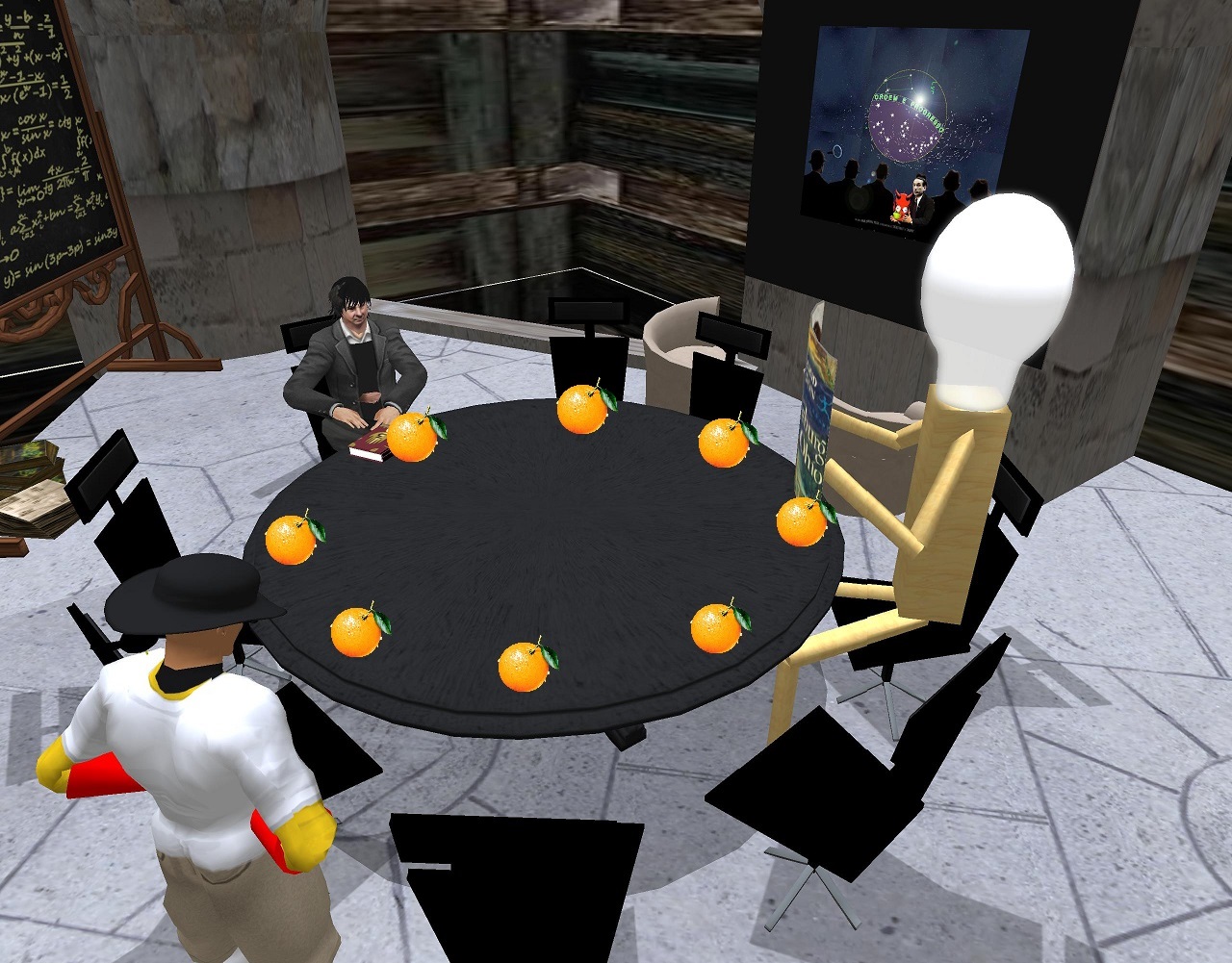 “Yes, hello once again, Gordie.” Baker decides to try to prod more out of him. “What do *you* think of this circle or wheel, Gordie? Do you think it represents the nodal photo-novels 1-4-7-10-13-16-19-22, like we talked about before? At the time, Wheelhouse (sim) was at the top of the developing continent and Wheeler (sim) at the bottom. This circle was created just over from Wheelhouse. We think it’s All Orange, Gordie (Wheeler and Grassy nod in agreement), but… what about you?”