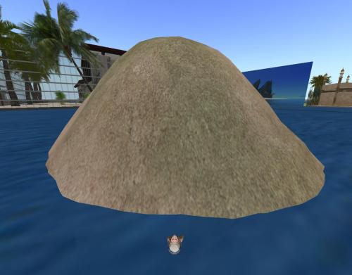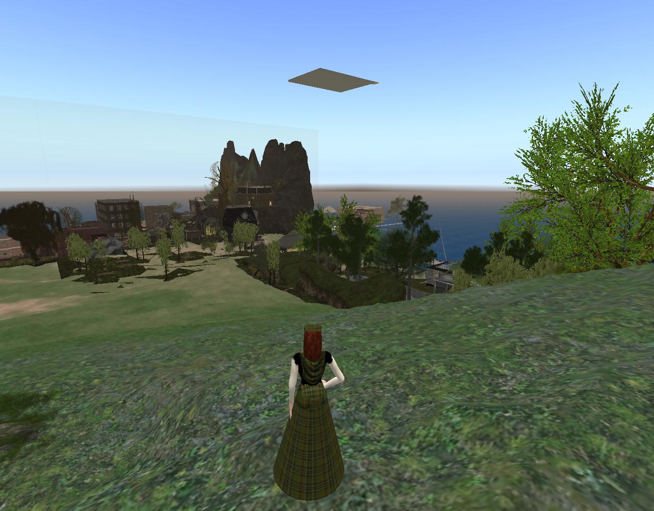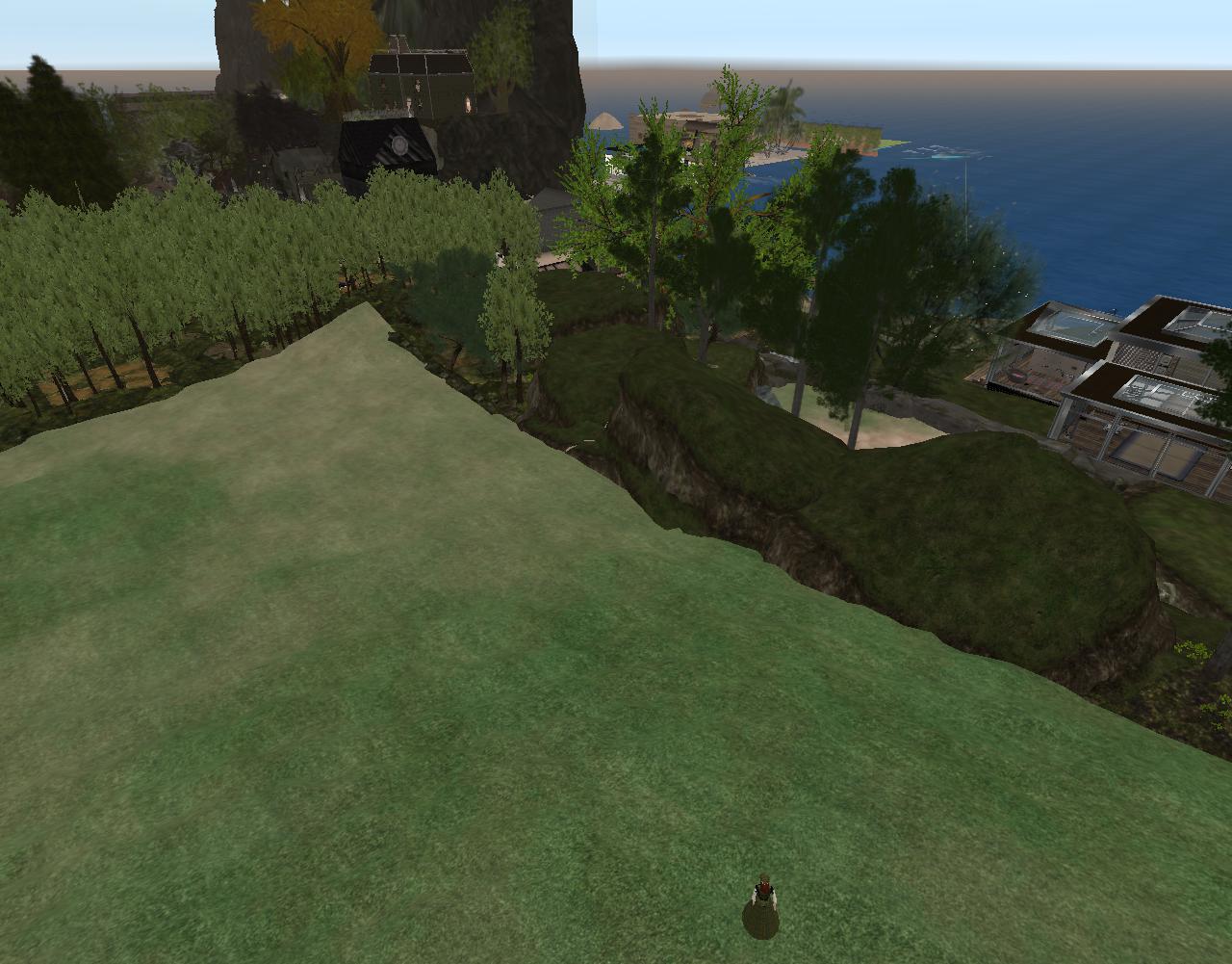 And then the also circular but considerably smaller island at the center of the neighboring sim of Danshire he quickly “moved” to, complete with Small Kowloon House. Briefly, that is — was he killed there along with the derezzing of the shack by neighborhood watch fanatic Red Pepper? Fellow former Danshire resident Phyllis Phox might know. If she weren’t combined with anti-self June Bug in the current novel. Current.
