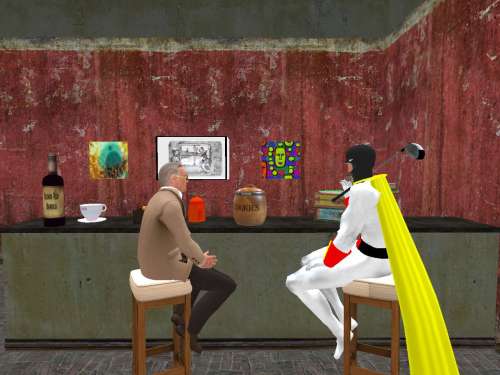 “Spaced Ghost,” he said to the next. “You’ve been with us since before the beginning, it seems. Surely *you* understand the power I desire. You can be there too. Sitting alongside me… and Parasol.” The Mann wasn’t quite sure how Spaced Ghost was young again, since his son Baker Bloch was nearing 67 years old now. Had to be 95-100. But here he is, shiny cape and shiny teeth and youthful physique. He didn’t question it, though. He was told he resided at the Shakespear’s Club in Centre County PA. Maybe the location was magical and gave him youth. He’d heard about such things associated with places named for The Bard. Like that ghost town near Lordsburg NM (revitalized in novel 39).