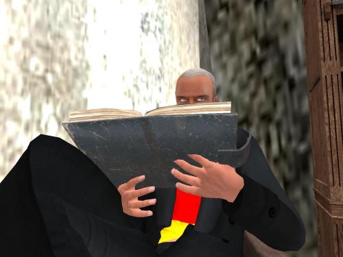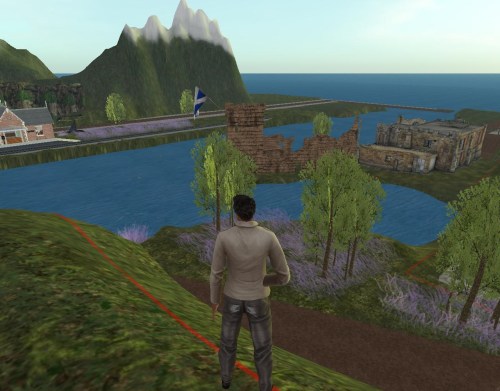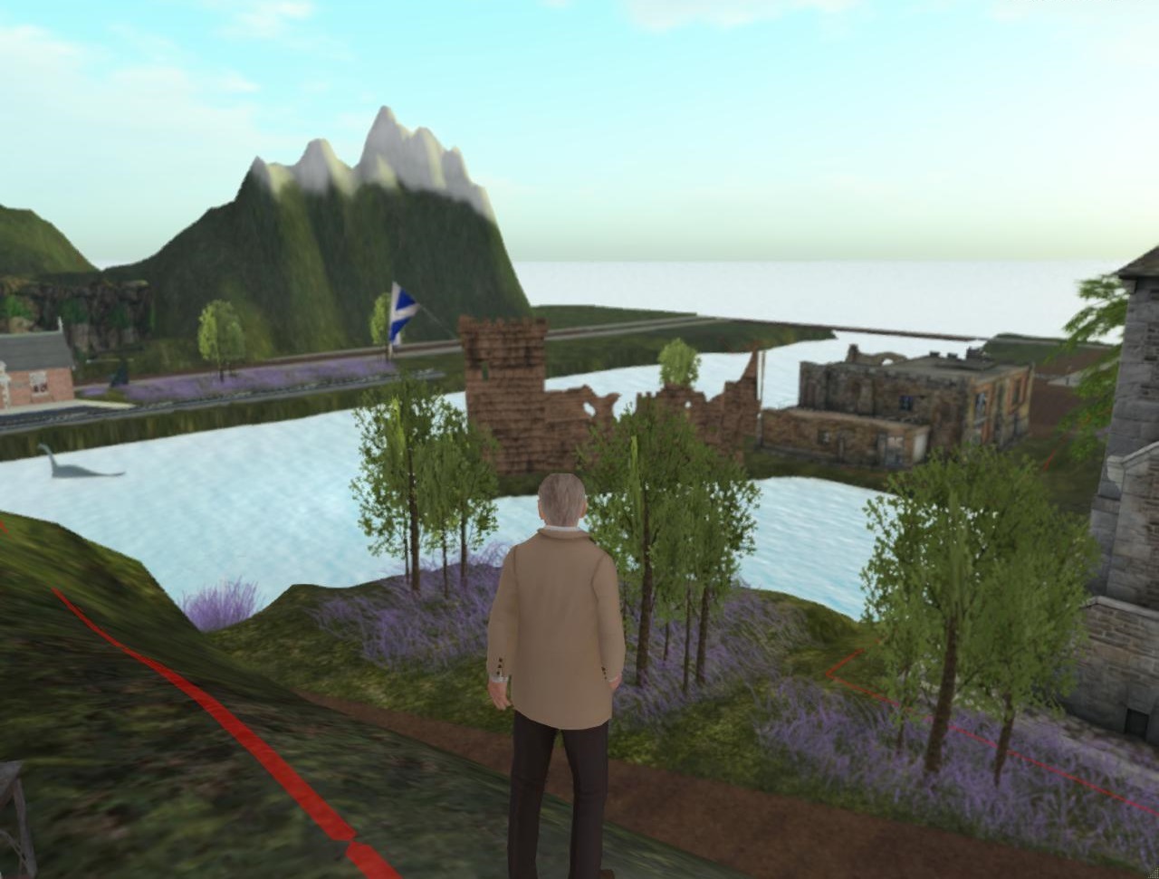 We catch up with Barry X. Vampire in Urqhart, not far from Instabar on the Corsica continent atall. Like anyone who lives long enough, vampires obviously included, Barry has turned to novel writing to try to explain the inner life he sees mirrored in the outer life all around him. Recent killings in Instabar, actually, have planted the seeds for his next inspiration, centered on a *man* named Larch who was at the center of it all. In reading about the deaths in the local newspaper and then researching the guy, Barry X. quickly found out that the lone pick in his profile was the Loch Ness Inn in a Scottish Highland related sim, with the description simply reading, “Old Country.” Sounds like his kind of place. He teleports over…