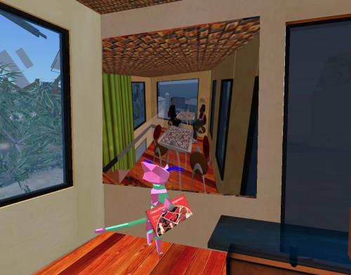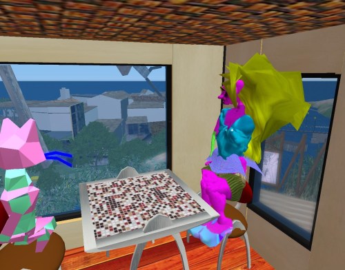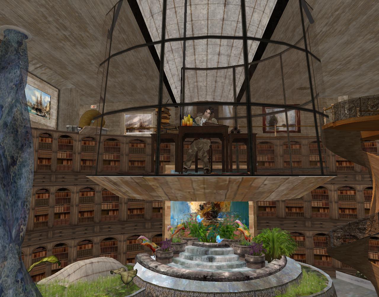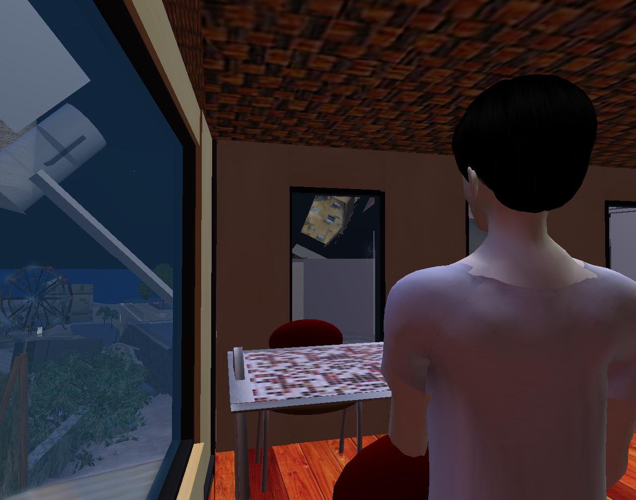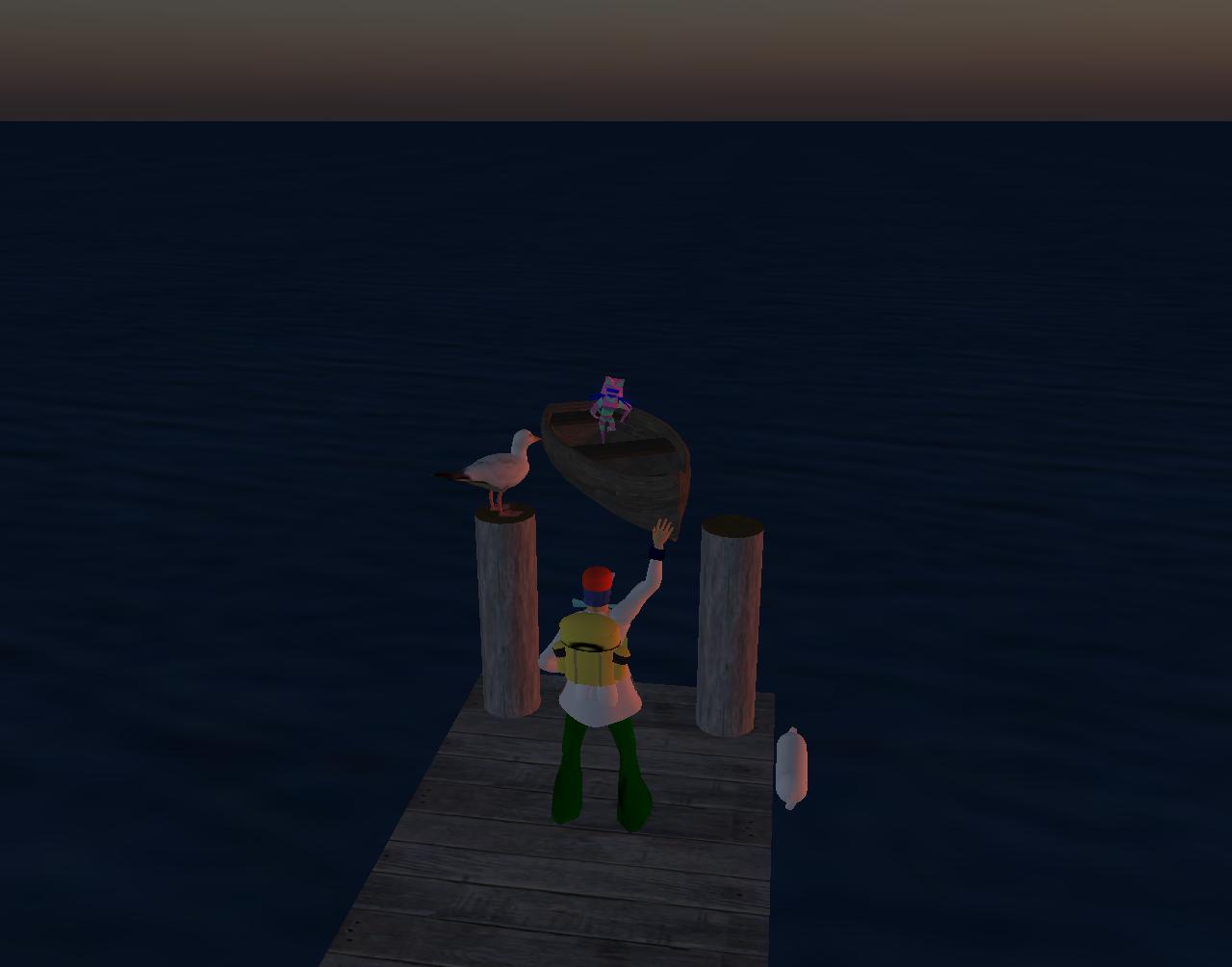 “$50,000 for the lot of it,” Messed Up offered for her cafe, her house on the water, heck the whole kitten caboodle, along with her not quite as messed up kitty kat who Prof. Young Harris had nicknamed Leo for some reason. Perhaps the effect of the 4 Corona-V brewskies he downed before leaving Joan/Astrid back at the New York university sim-island to the northwest, another in the cluster of Weird-o Islands as history will call them. Like Stranger Creek here. Like Abbey up in the air where David A.B. lives, who seems to be the same as God in our current story or a close approximate. And then the NY isle to finish, upper state style. No Arthur Kill involved here, nor his Staten Island. He has been eliminated from this region by another local named Illuminatus, who we’ll revisit with later. Because, yes, Prof. Young Harris was charged with buying the island for upwards of 50,000 linden dollars, which Messed Up just offered. He couldn’t talk her down for some reason despite his savvy salesmanship — perhaps, he reasons, she was secretly in on the deal all along as well, and had forewarning of his visit. Or maybe they were just in total sync with each other. Because they also found themselves married 5 years down the road, after Messed Up had been basically cured of her confused look status and come into proper focus. Kind of Messed Up 02, renamed Leo from this point on, was with them until the last. A Happy Ending.