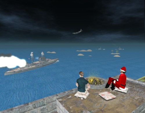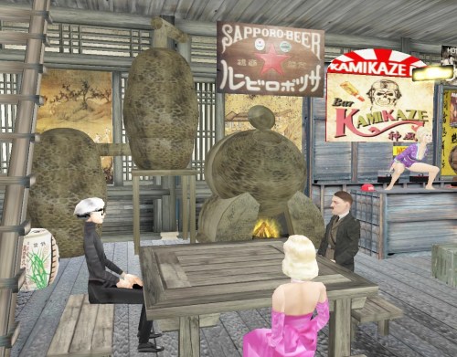 I was on a trail again, per usual. A Yd Island profile led me to here: Fonzerelli Docks, a New Babbage location which seems to have seen happier days in the past. Former owner: C. Thetan of Nova Albion. Ahh yes. Our Second Lyfe just keeps pulling surprises on me. I figured it was this location that “Fancy (Dress Ball)” Sally (Nugent?) fled from her creator we talked to a couple of posts back, but I’d have to place her here if so. No problem! Let’s meet up with her at this Ruby’s Pub, apparently a popular local watering hole and just next door to the docks.