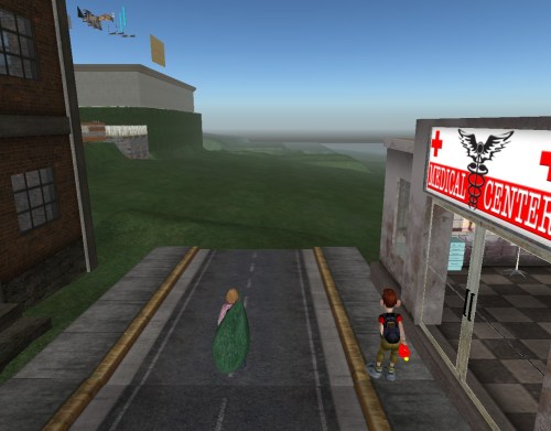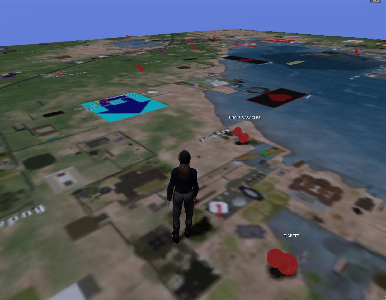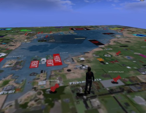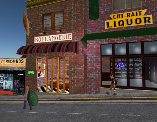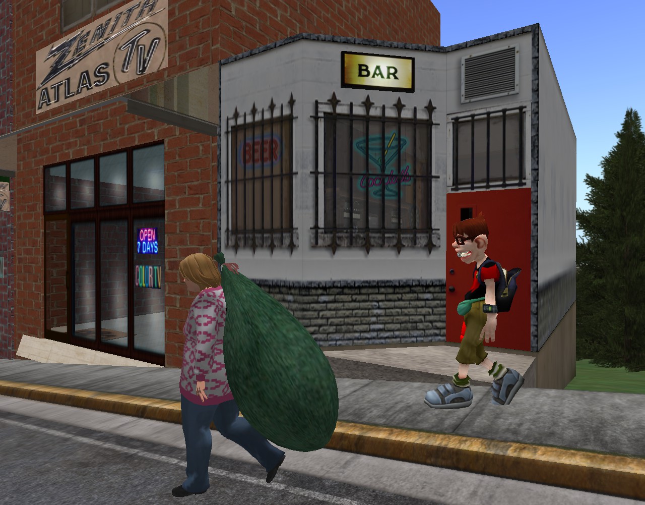 “I don’t know,” I replied through Baker Bloch. “The Moon. Er, over there’s the Wild (White) Whale used to audition new avatars. And then back there is the White Whale Restaurant or Lounge or something where the winners gather afterwards, the avatars who are eligible for new parts.”