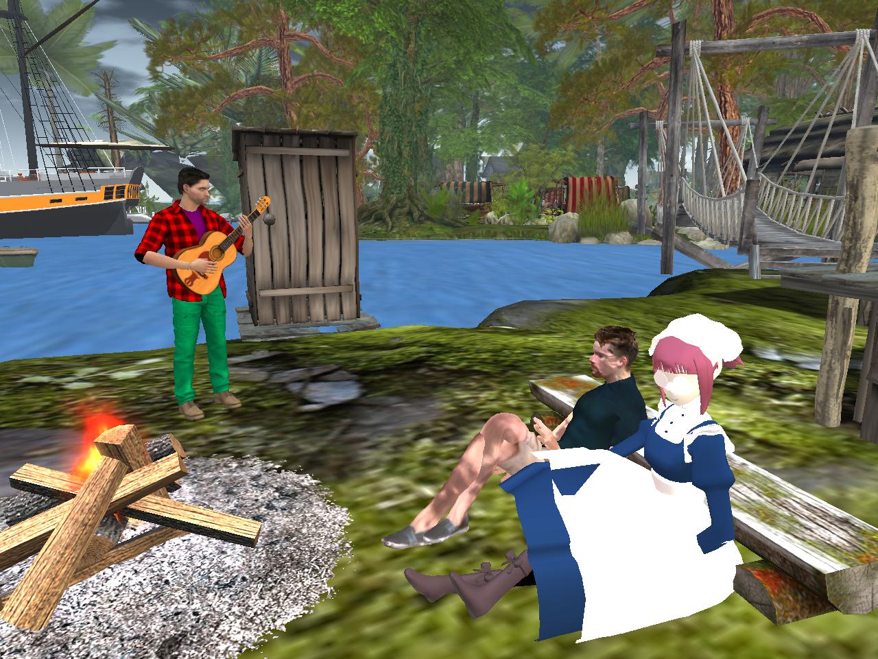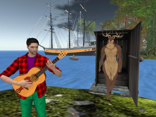 Returned to Our Second Lyfe, Marty stares at The Rock from his small sea green isle, wondering what it means. Owned by a Blackbyrds group. The Other Rock is in the southwest part of the square, *this* Rock is too — Nautilus continent that is, and its 32 x 32 grid of 256 x 256 meter sims, the focus of the last 6 photo-novels if you include the current one.