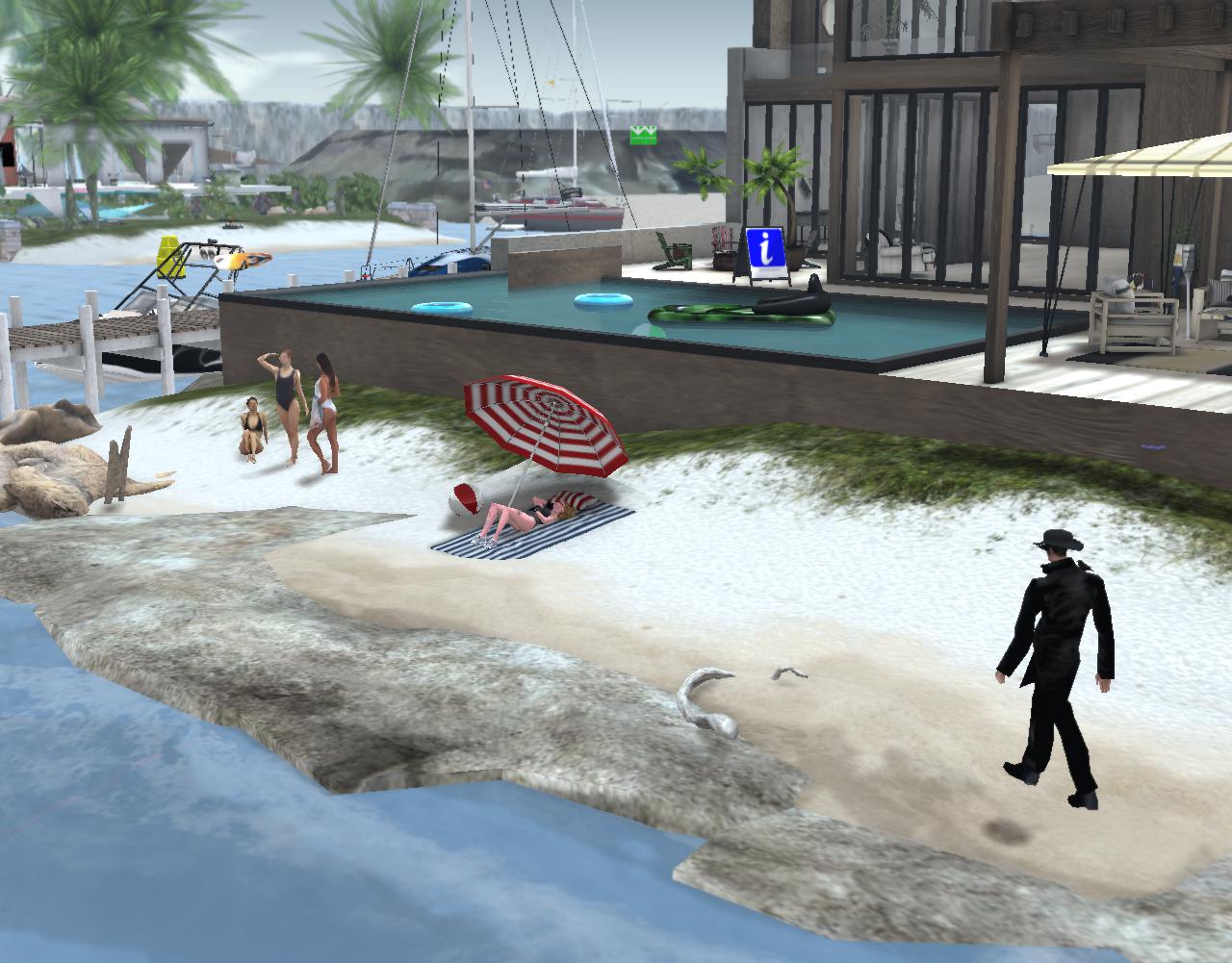 A new crop of potential recruits has shown up on what they call Umbrella Beach on the western edge of Nautilus’ Crisp Sea, chatting after the delicious, shrimp dominated buffet. Decision time coming up. Whether to step into the shade of the protecting umbrella or go back out into the glare of the harsh, unrelenting sun, all exposed and for everyone around to gawk at in their increasing redness. Red ironically protects against red, they said during the meal, standing up one by one, these past recruits, to give their testimonies of success and life fulfillment through the initiative, the collective. Already, one here was basically under the umbrella, decision made, shackles (of outside life) removed and legs to be retreated back in the shade with the rest, perhaps even before I write this sentence. The purple clad one in the background middle was also about to cave, being a bigger shrimp lover than Lois in white. Sitting down Darla was just ready to go home and be done with it, another one forced here by a prevert relative trying to seduce her to the dark side. “Okay, okay,” she said to her mother Tulipia in a call between meal and beach. “You win. We’ll move to Ohio.” Joy in the Conner household tonight. Uncle Albert would *not* be tagging along, thanks to a restraining order issued by Pinky, Darla’s father, just yesterday.
