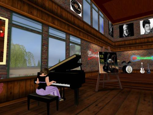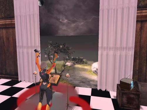 She suddenly has the urge to get up and dance. Must be the costume. And the place.