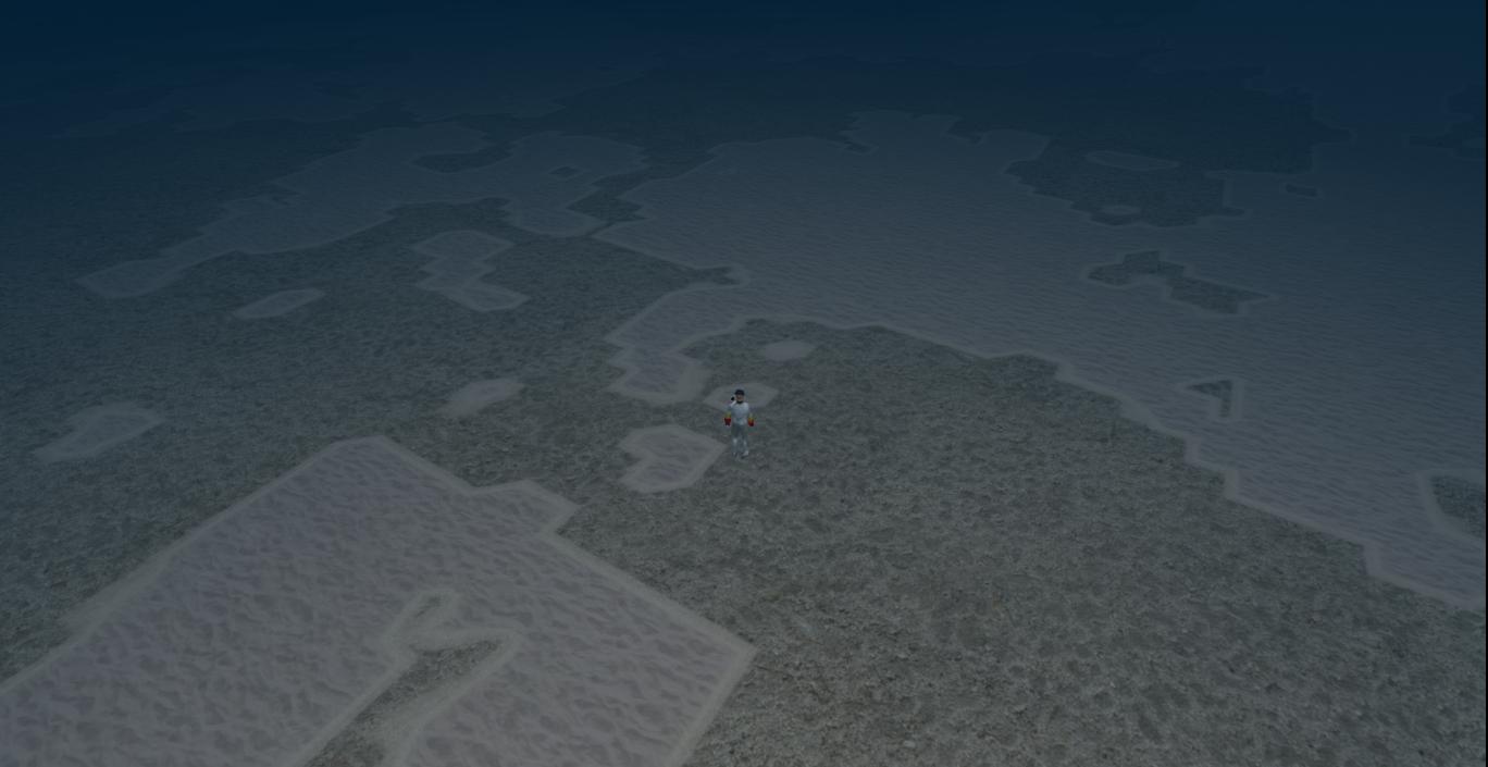 A sim rather obliquely dubbed The Measure lies along the southern edge of this sea. Since he was in the area, Baker Bloch decided to prematurely end his pod tour and revisit the sim, known about before as a potential mystery spot. He wasn’t disappointed: the strange, geometric markings found back in December 2009 were still present all along most of its sea floor, brown on beige.