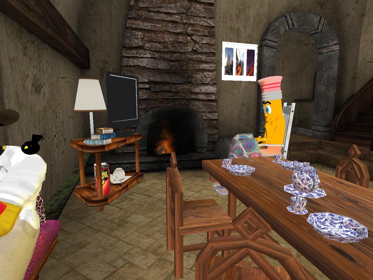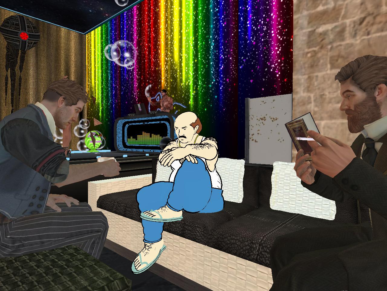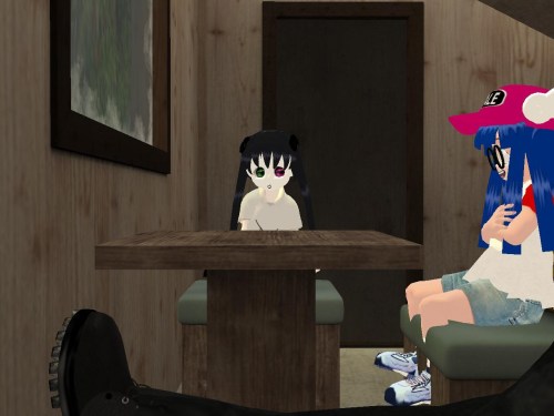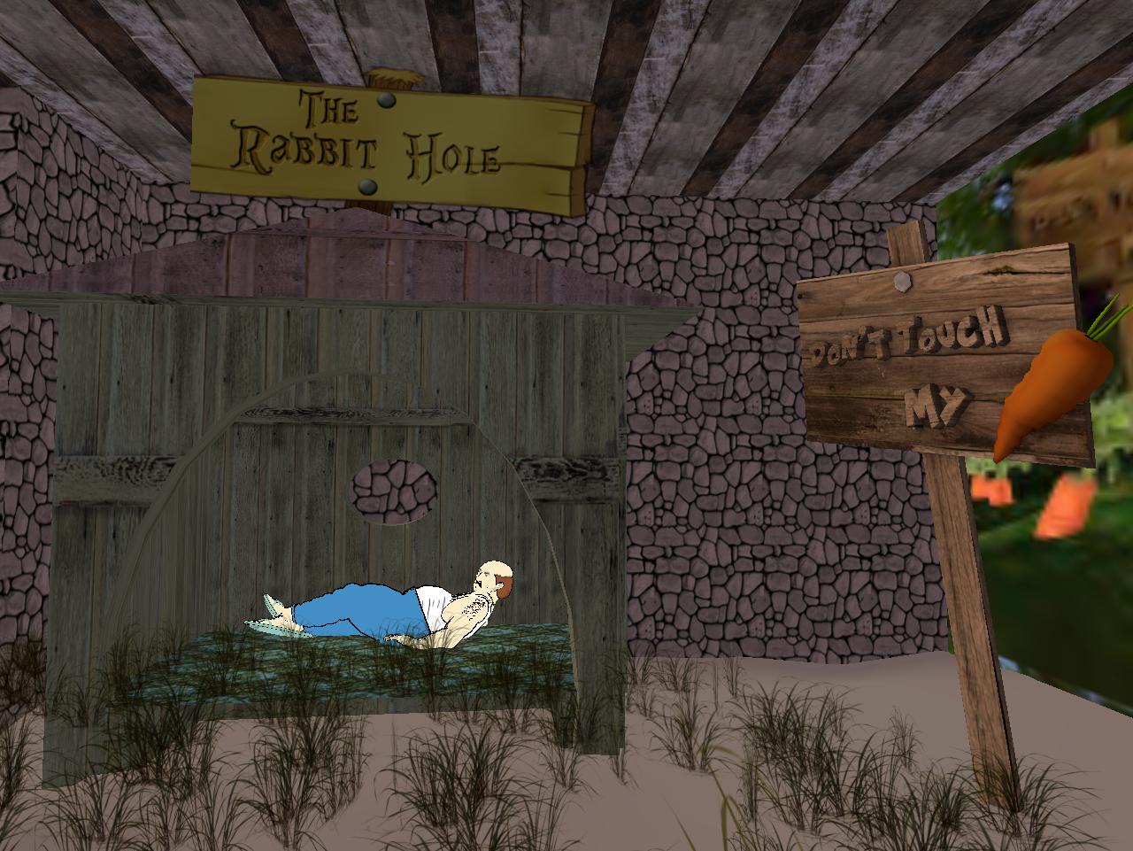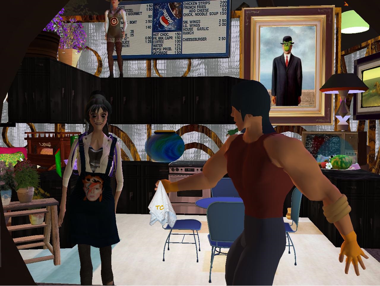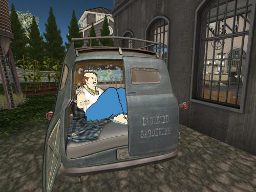 “Sisters just up and left you, huh?” stated Karl, getting serious for a change. He’d never had a family of his own. Just those crazy, fast food neighbors of his who were the focus of the… his reality. But since he was 3d again, perhaps he’d eventually have to go back to the old house, the old life. His thick coat of fur had disappeared upon, er, awakening outside in the Bluebird Cuddle Van. And how did he get here in the first place? That remains a mystery to him. Must have been some hell of a party.