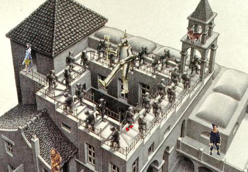 Tinman experiences the mysterious elevating powers of the famed Escher Marching Monks.