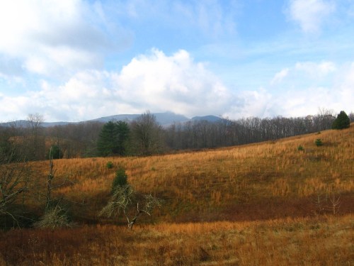 View of Granddaddy Mtn. from the meadow, important in Mossman mythology as the source of their fabled Rock Gods.