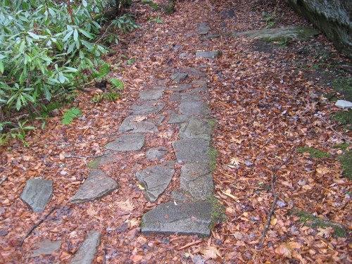 At the last of these rocks, the trail turns into a type of stone sidewalk for a brief spell before reverting back to dirt.