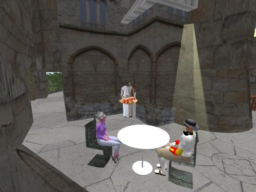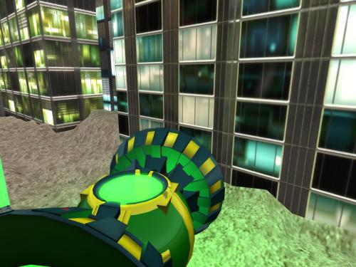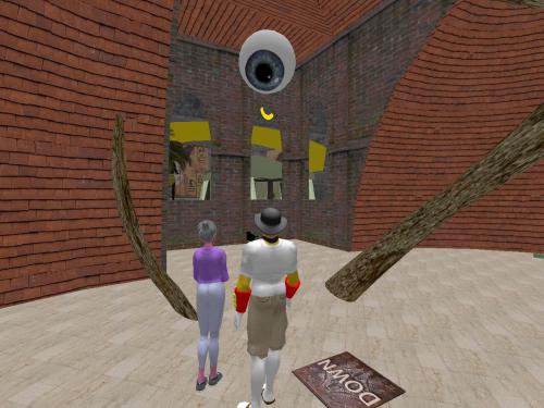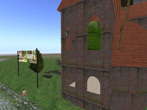 Just later we found out that Carrcassonnee herself decided to become the sign, just to switch it out for a while. Her various olive limbs were separated out and tightened or rolled up a bit to become arranged as the numbers — 6 prims both, then. Only the 7th, her *eye*, remains within the Temple of TILE. Until the end of the month that is. Or thereabouts. Everything seems to be “or thereabouts” in this here Urqhart location for Collagesity (or thereabouts).