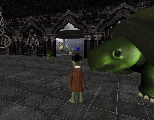 “Carrcassonnee,” he said, still looking her over, noticing the lack of “junk”, for instance. “I can’t believe it’s really you. After all these years!” But then he remembers he’s not his father. He’s just having memories of his father — happens sometimes. This is what you get for being estranged. Confusion at times. Who is who and such. “I mean, after all this time about my *father* talking about you, heh heh.” Nervous laughter to end. He gazes up at the single eye. What did it see, what did it read? His soul?