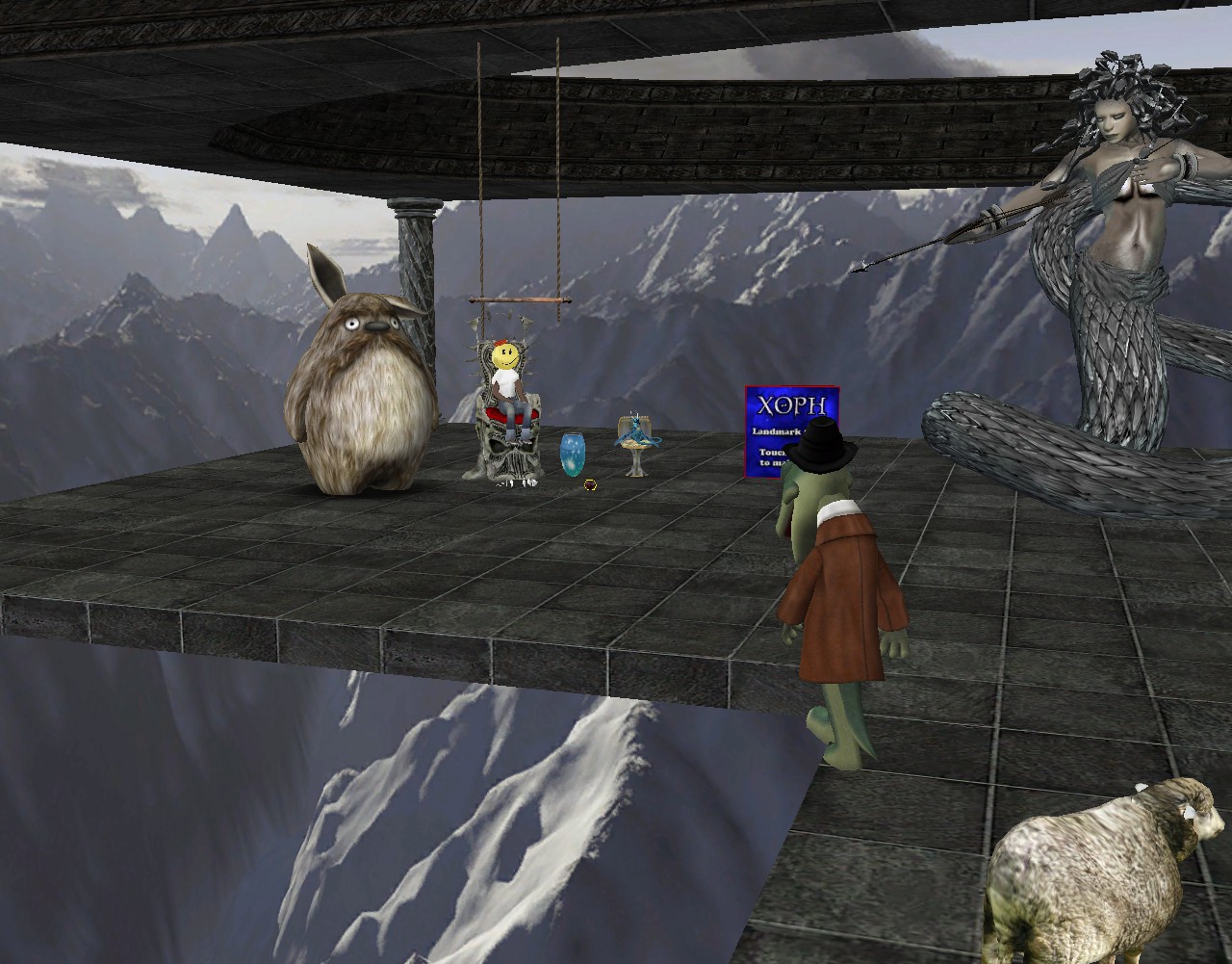 “Carrcassonnee,” he said, still looking her over, noticing the lack of “junk”, for instance. “I can’t believe it’s really you. After all these years!” But then he remembers he’s not his father. He’s just having memories of his father — happens sometimes. This is what you get for being estranged. Confusion at times. Who is who and such. “I mean, after all this time about my *father* talking about you, heh heh.” Nervous laughter to end. He gazes up at the single eye. What did it see, what did it read? His soul?