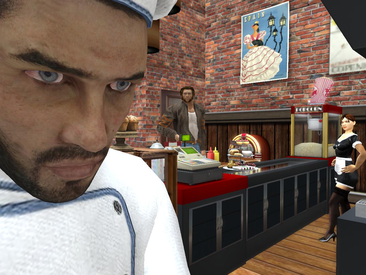 They later talked about it in front, a looked over final animation. Then they’d have to leave the bus or else chance just repeating themselves over and over, however pleasant the experience was the first time around. She knew she loved playing the drums now — she could find others. She knew she dug dancing, and actually there’s a line dancing joint just across the lake they can go to for that. As far as living quarters and being able to sleep and do some other stuff via animations, they had found the perfect spot, also across the lake but a little further back from the water, behind that other interesting club that always seems to contain so many avatars. She went yesterday and looked them over. All AFK, all ready to serve their purpose while the owner was in all likelihood absent from the scene. How interesting, she thought. Kind of terrifying but still…
